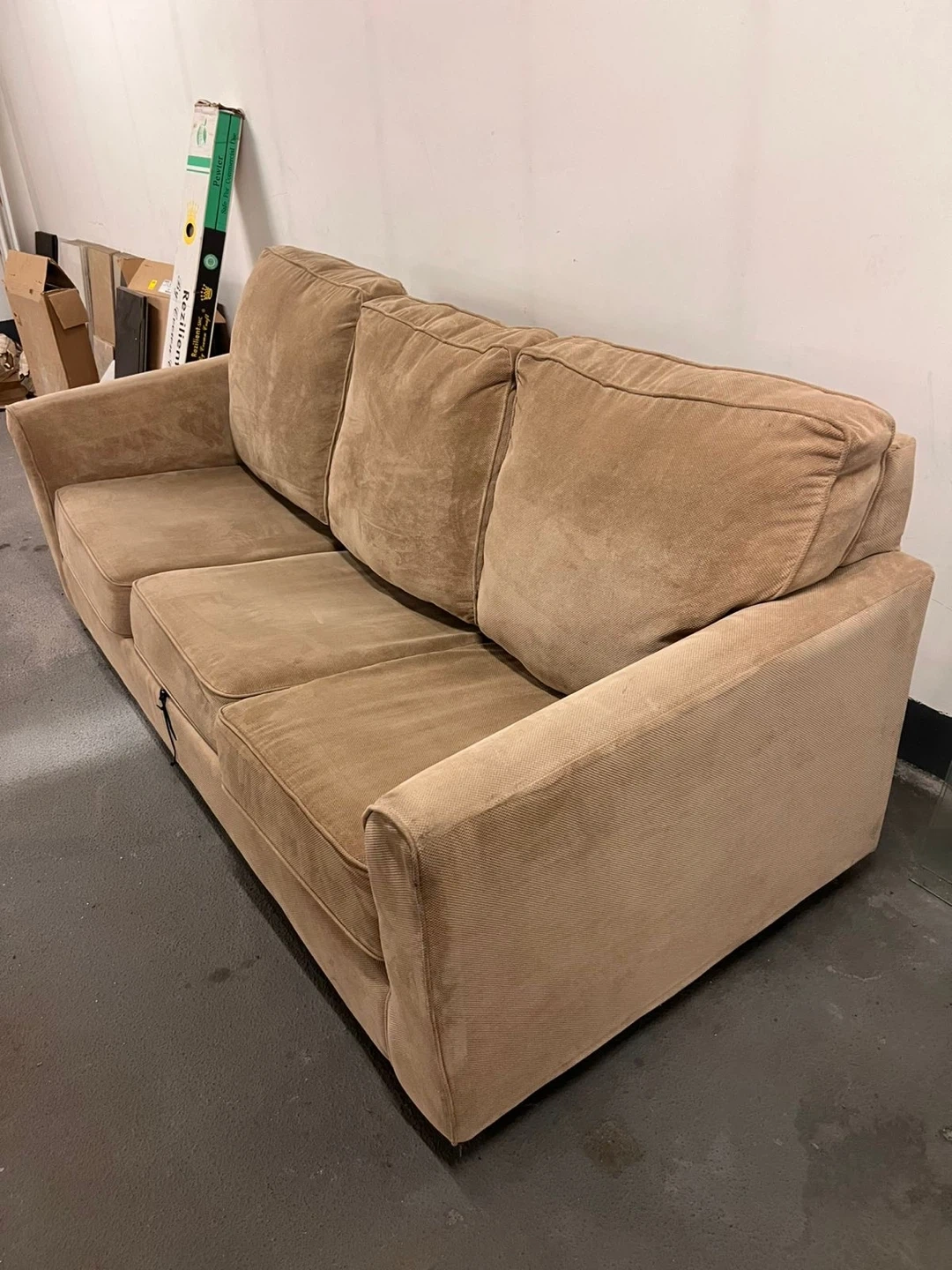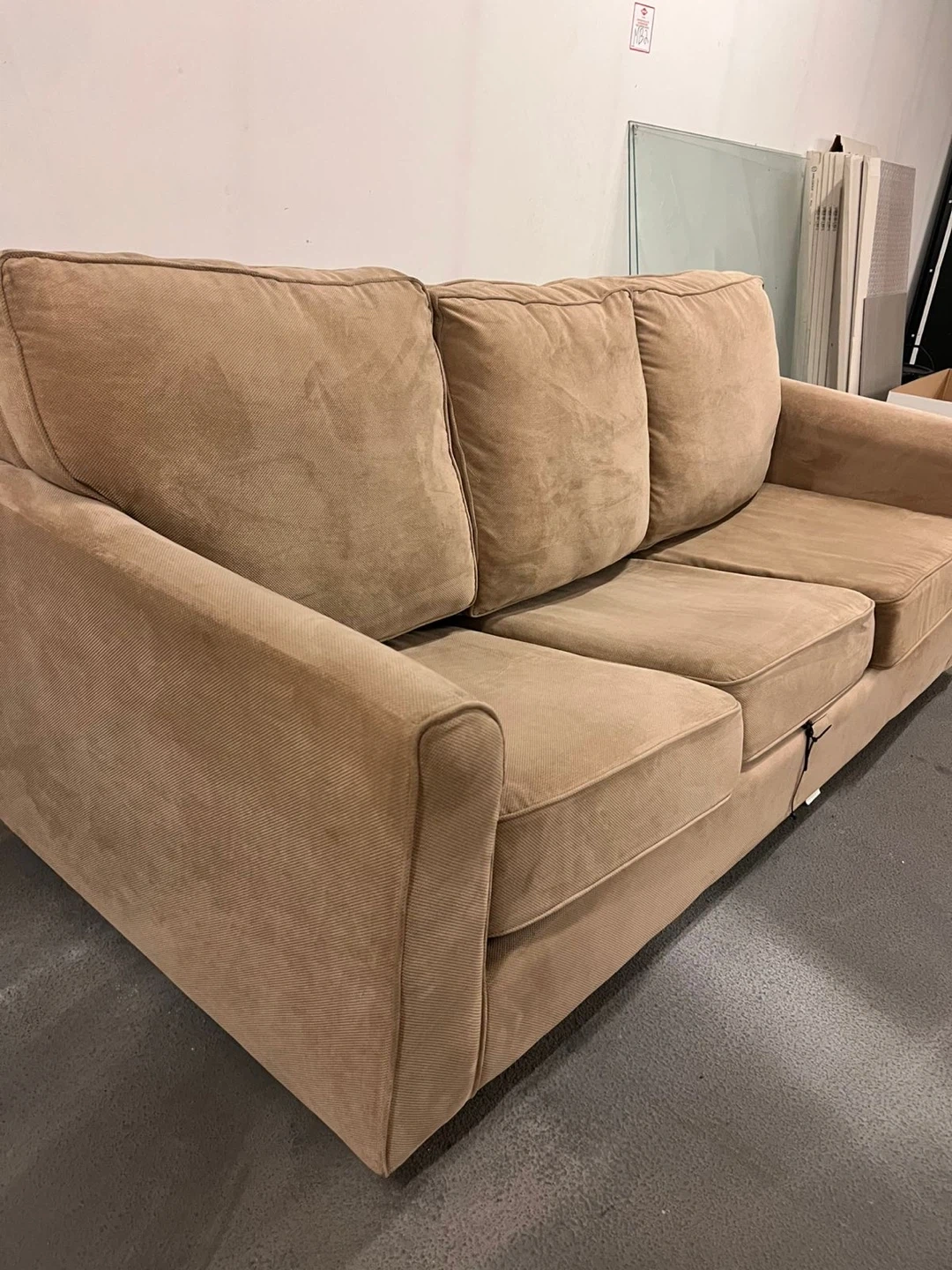 A comfy beige sofa that easily converts into a pull-out bed! It's in great shape and ready for a new home. Perfect for guests or small spaces Sizes: 74cm height, 83cm wide and 190cm long 📍 Kipling and Bloor
