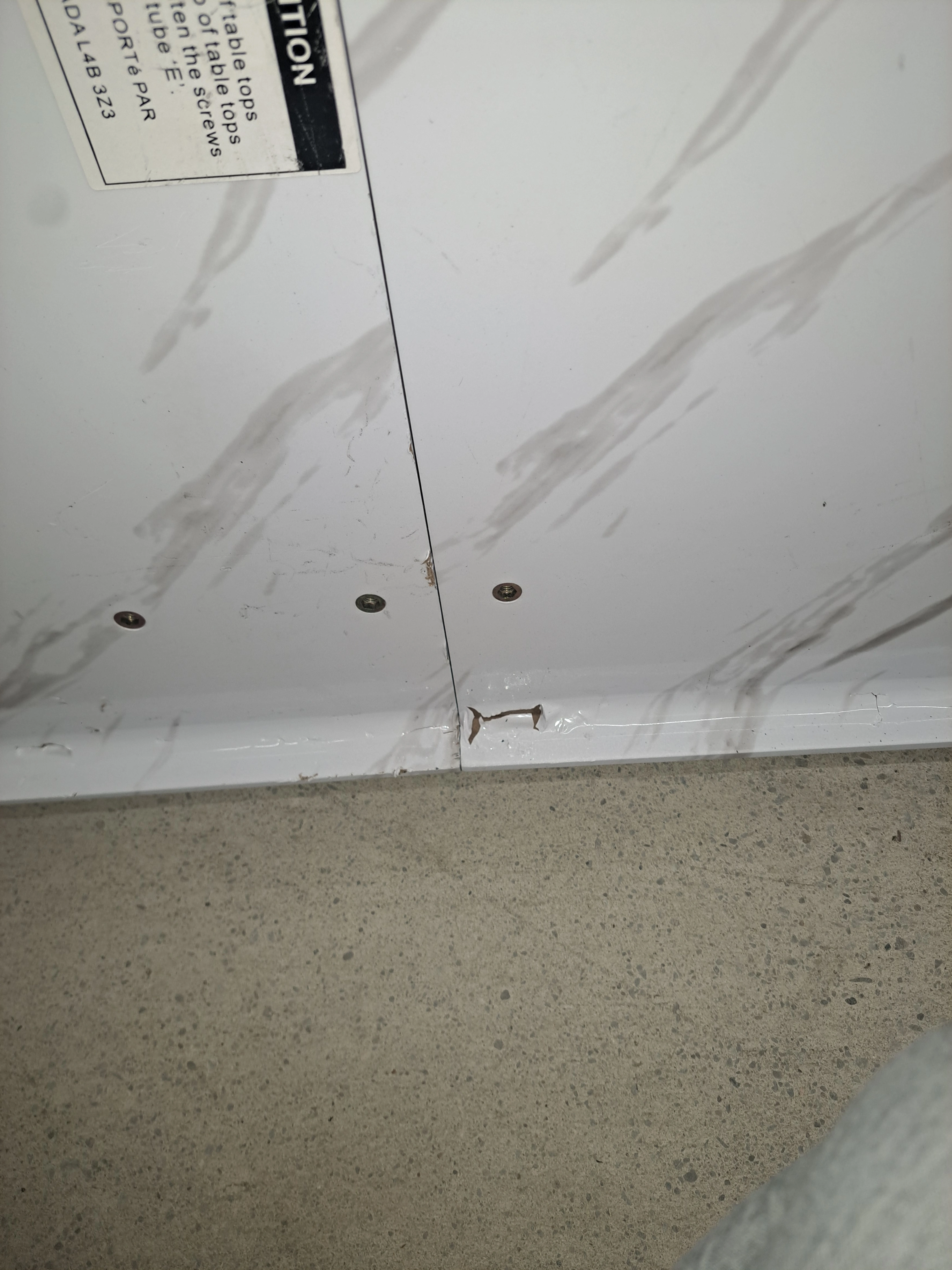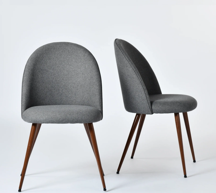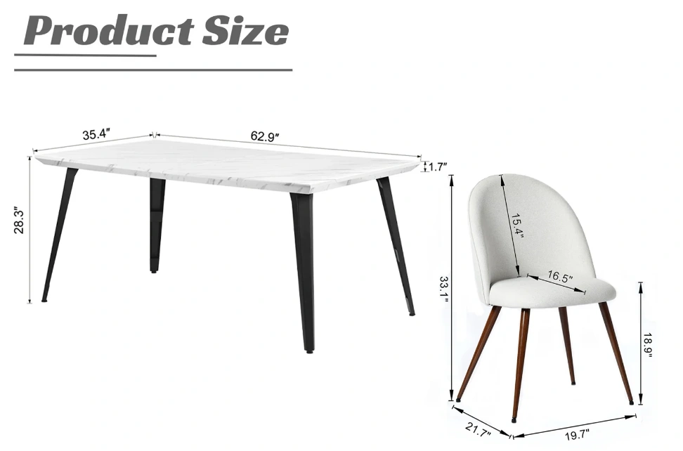97Modern white marble dining table paired with four high-back upholstered chairs in grey, beige, or brown. Ideal for compact dining areas with a clean, timeless style. Table underside is little damaged as shown in pictures. Chairs are perfect and no damages. Table only - $100 Chairs - $75 each Table + Chairs - $350 Features White marble pattern tabletop with rounded corners Black metal legs for strong support and modern appeal Set includes 1 table and 4 upholstered chairs High backrest chairs in grey upholstery Walnut grain powder-coated metal chair legs Space-saving design for compact dining rooms