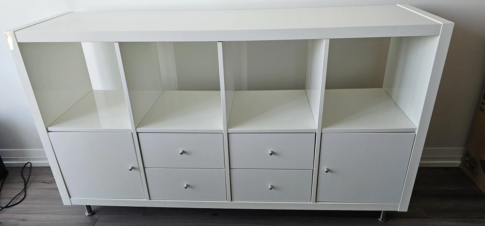 Selling a white IKEA Kallax shelf unit! It's in good condition and ready for a new home. Perfect for organizing books, toys, or anything you need to store. It's a versatile piece that fits well in any room