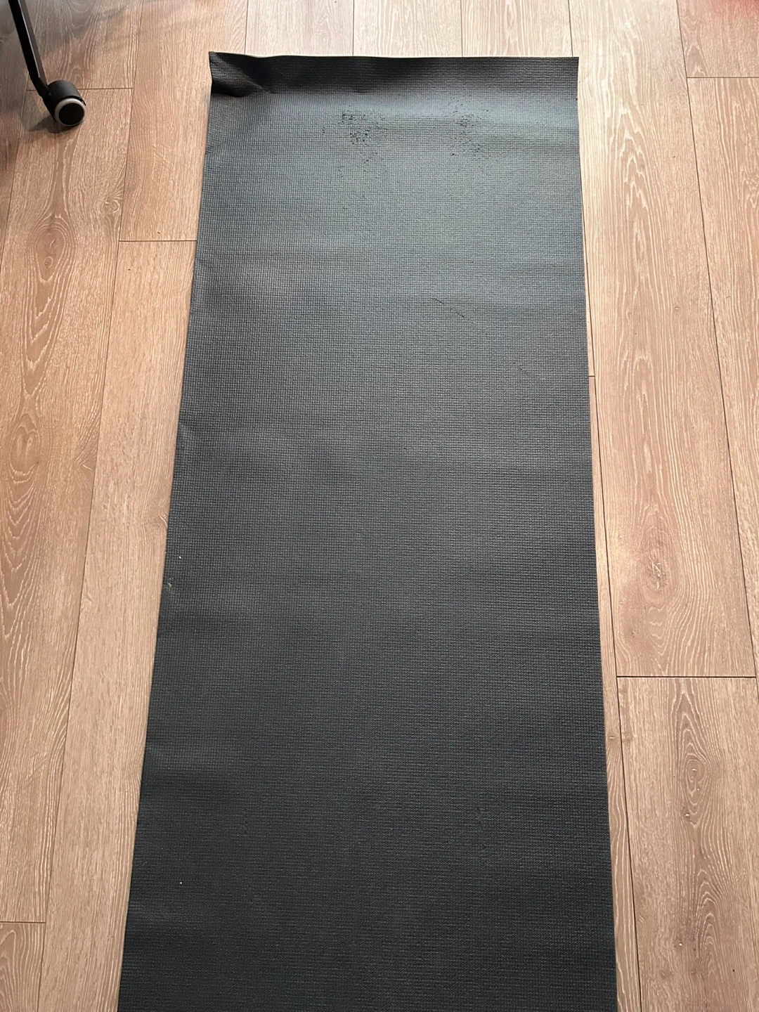 Selling a used yoga mat in grey. I'm hoping it can find a new home where it will be used more often. Location bay and temperance