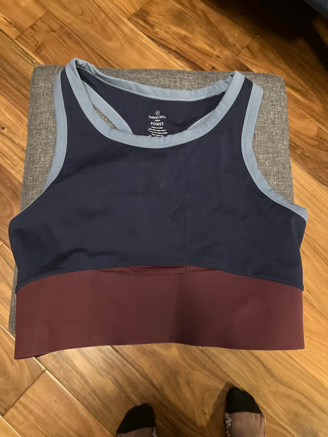 Selling a Sweaty Betty Power workout bra in size XL. It's in great condition and ready for your next workout! Only worn and washed twice. The bra features a stylish design with a navy and maroon colour block.