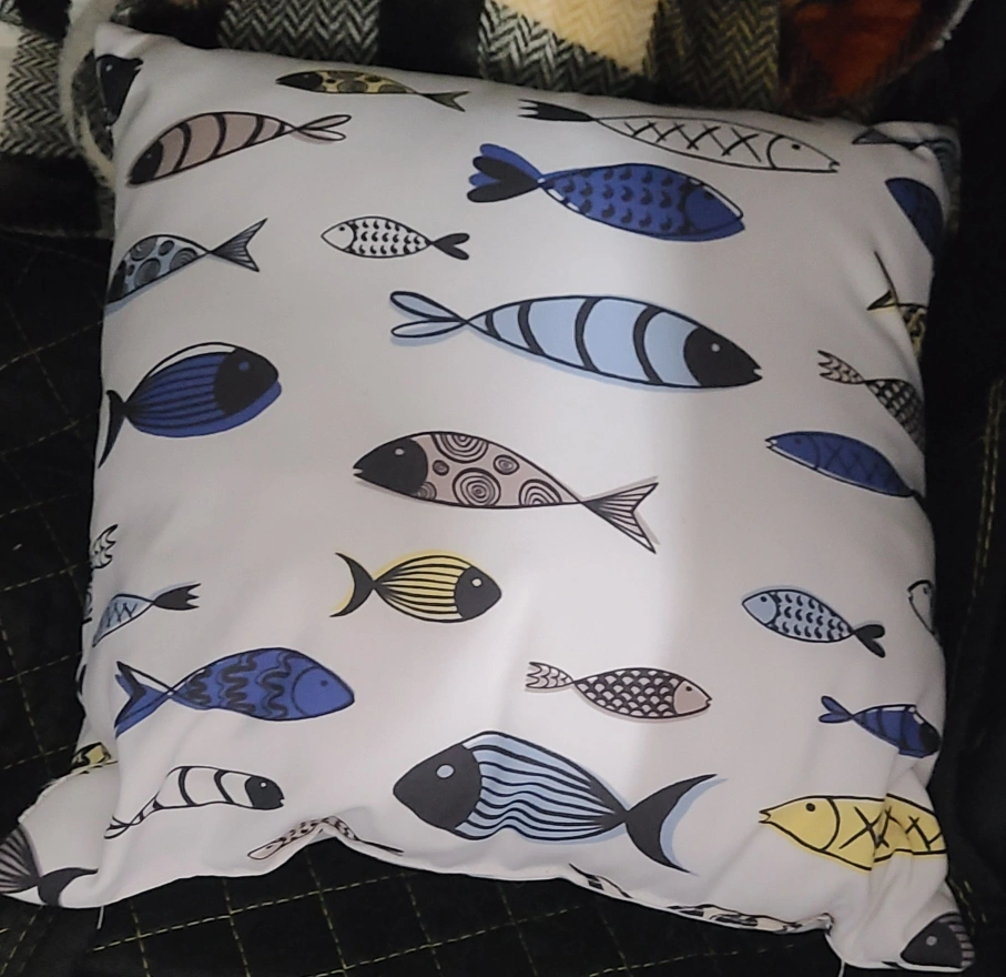 Cute throw pillow with a fun fish print! Perfect for adding a touch of whimsy to any room. It's in great condition and ready for a new home. Brand new. Non smoking no pet home. Cash only absolutely no etransfer. Pickup in Dalhousie.