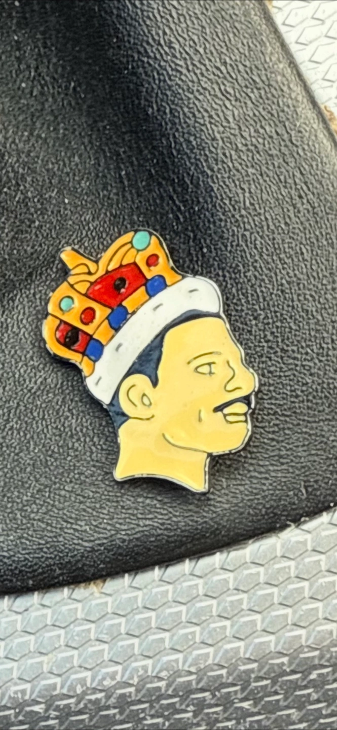 60Here's a fun enamel pin featuring Freddie Mercury with his iconic crown! It's in great shape and ready to add some flair to your jacket, bag, or pin collection