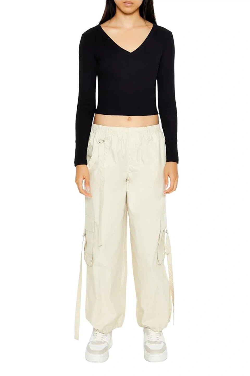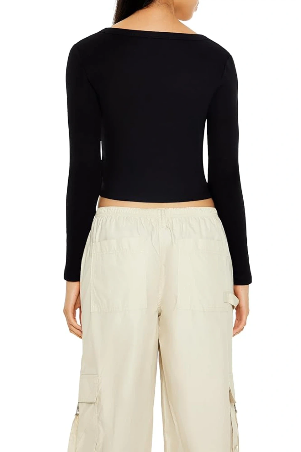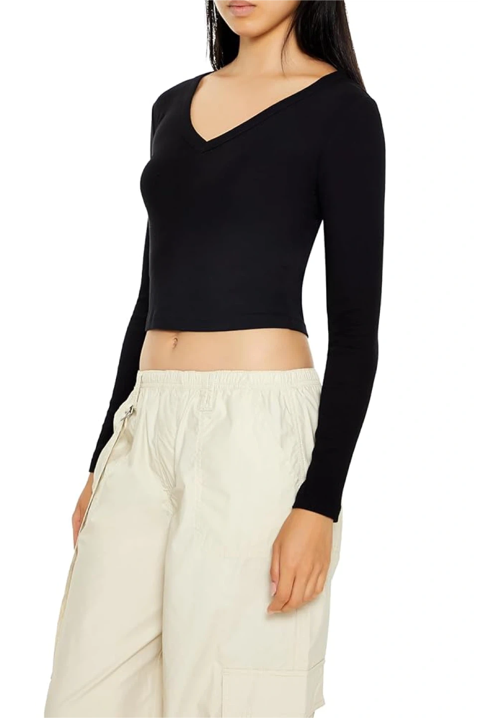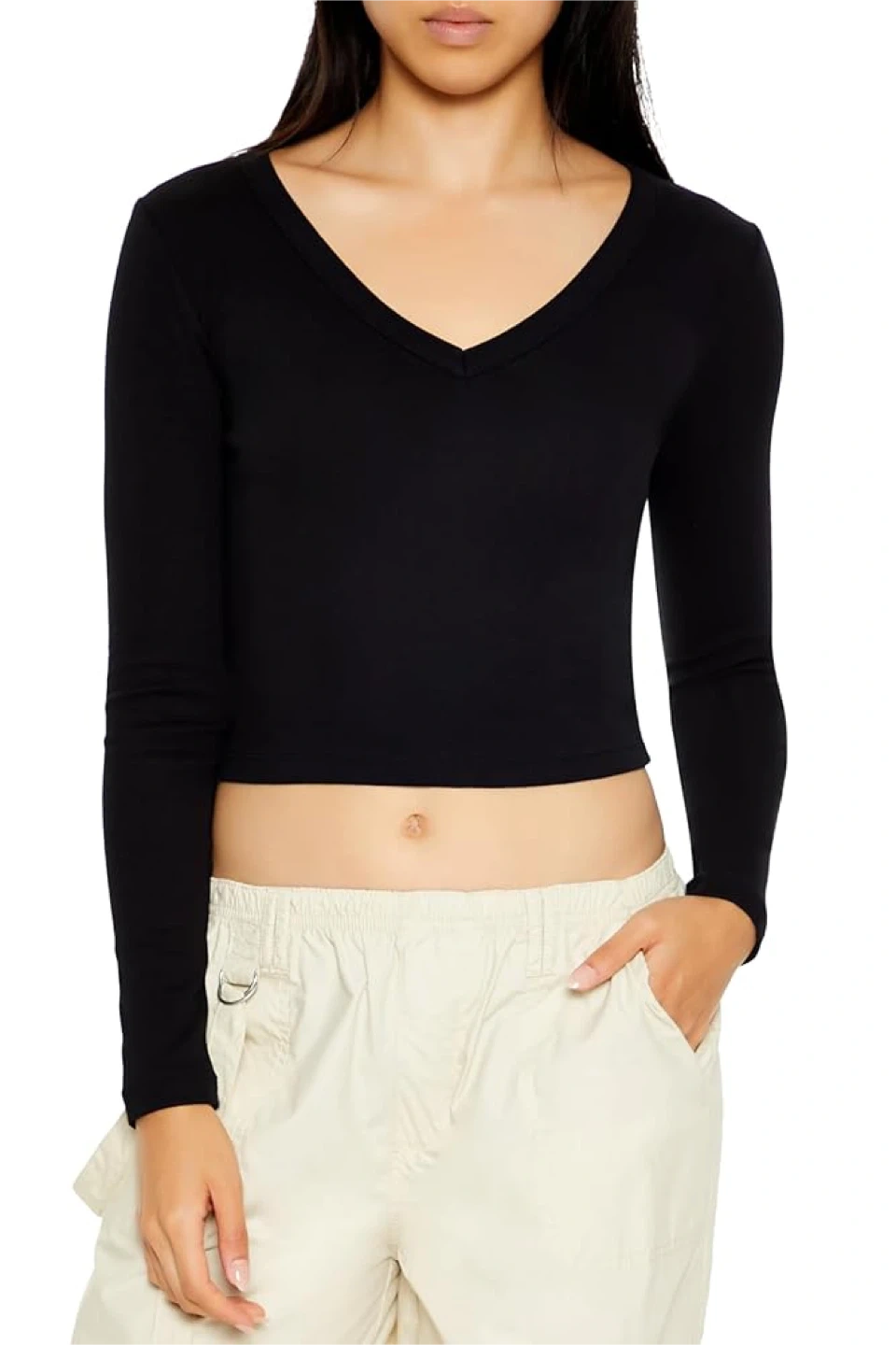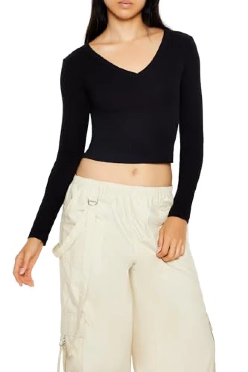 484New Forever 21 Womens Long-Sleeve V-Neck Crop Top Size-M No delivery Fastes pick up preferred