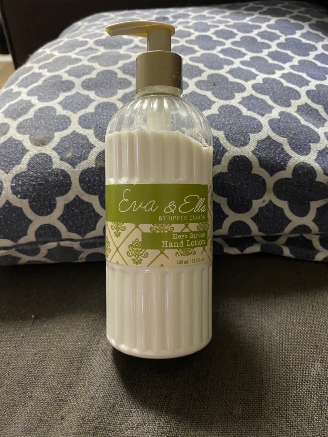 Selling a bottle of Eva & Ella Herb Garden Hand Lotion. It's a 400ml bottle by Upper Canada. A great lotion for keeping your hands moisturized!