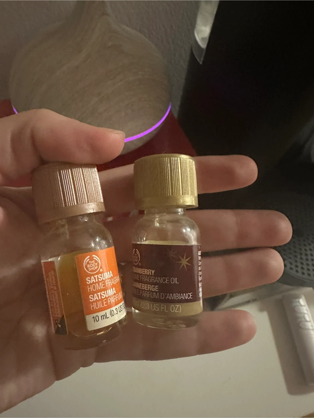 I have an aroma diffuser for sale! It comes with two fragrance oils from The Body Shop: Satsuma and Cranberry. The diffuser is in great condition and ready to fill your home with lovely scents