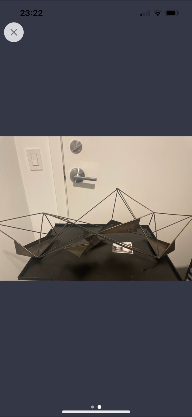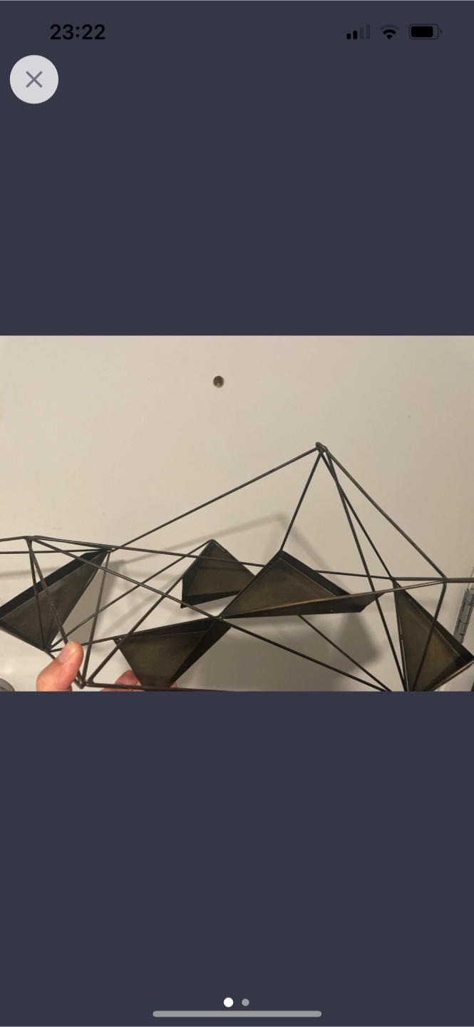 Selling a modern GEO tealight iron wall candle holder by era85. It's a gorgeous piece in black, measuring 20 x 7.75 x 6.25 inches. I bought this for $72.99