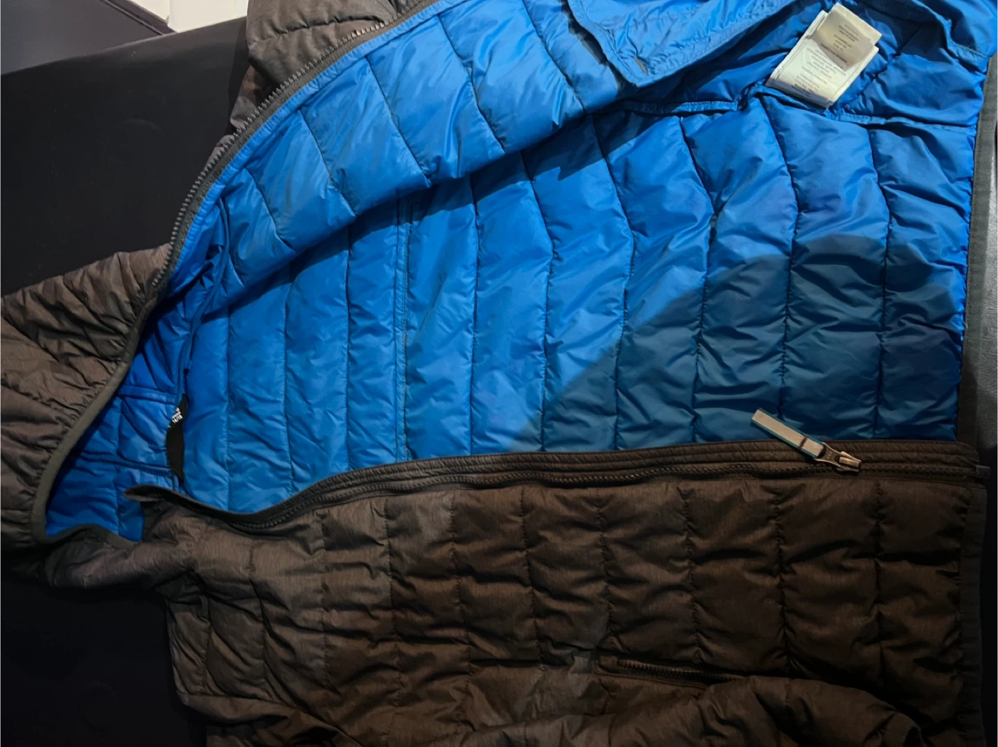 Selling a Paradox puffer jacket in size XL/TG (14/16). It's a stylish grey colour on the outside with a bright blue lining on the inside. Great for staying warm and cozy!