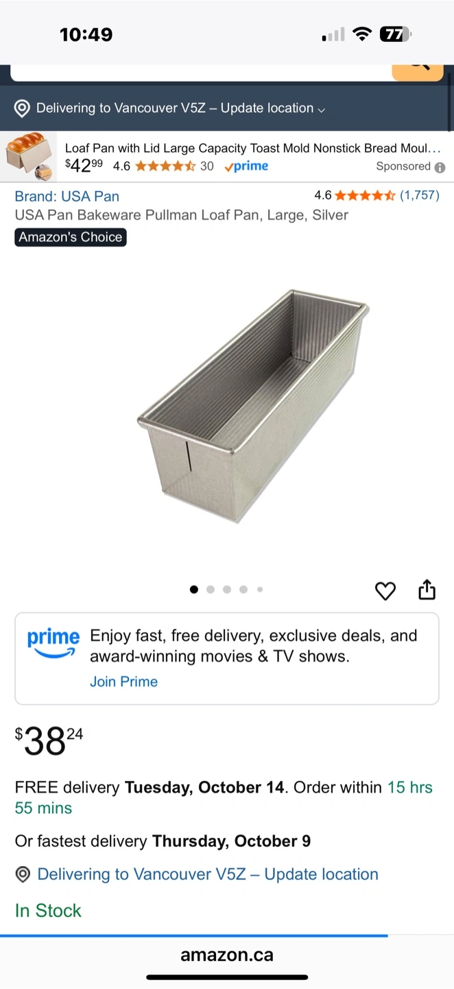 481Selling a loaf pan, perfect for baking bread or cakes! It's brand new and ready for a new home. The pan is silver in colour and measures approximately 11 inches in length. Get ready to bake some delicious treats!