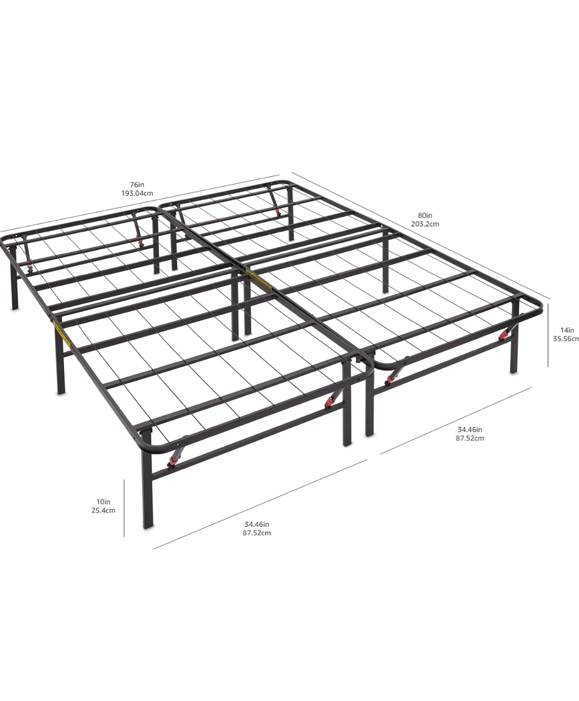 10Selling a queen-size metal platform bed frame. It's black and measures approximately 80 inches in length and 76 inches in width. The height is about 14 inches. Perfect if you need a simple and sturdy bed frame!