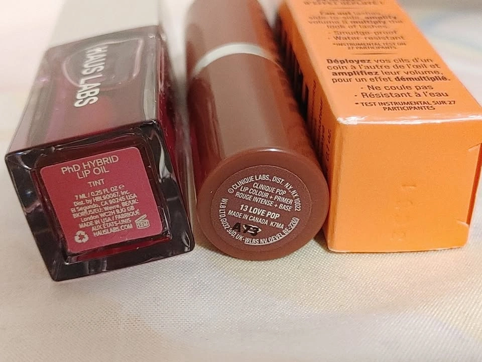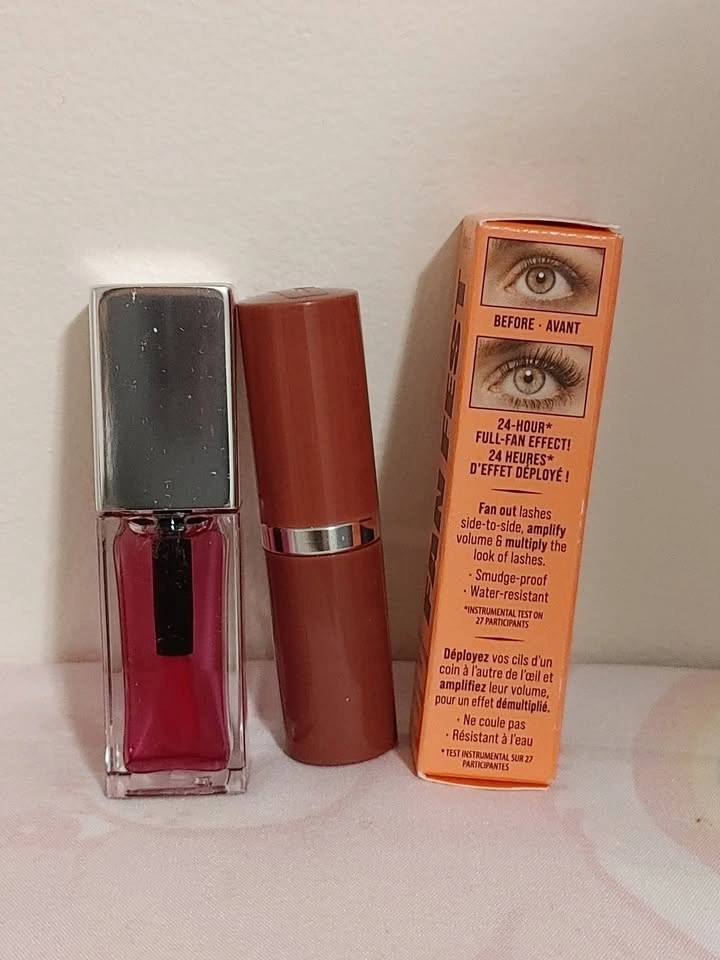 33Lip Gloss and Mascara set - all of it for $10 (1) Haus Labs phD Hybrid Lip Oil Tint 7ml (1) Benefit Fanfest Mascara 3 g Blac (1) Clinque Love Pop 13 Never opened. Came as part of 'favorites' and sets from Sephora and Shoppers or $5 each