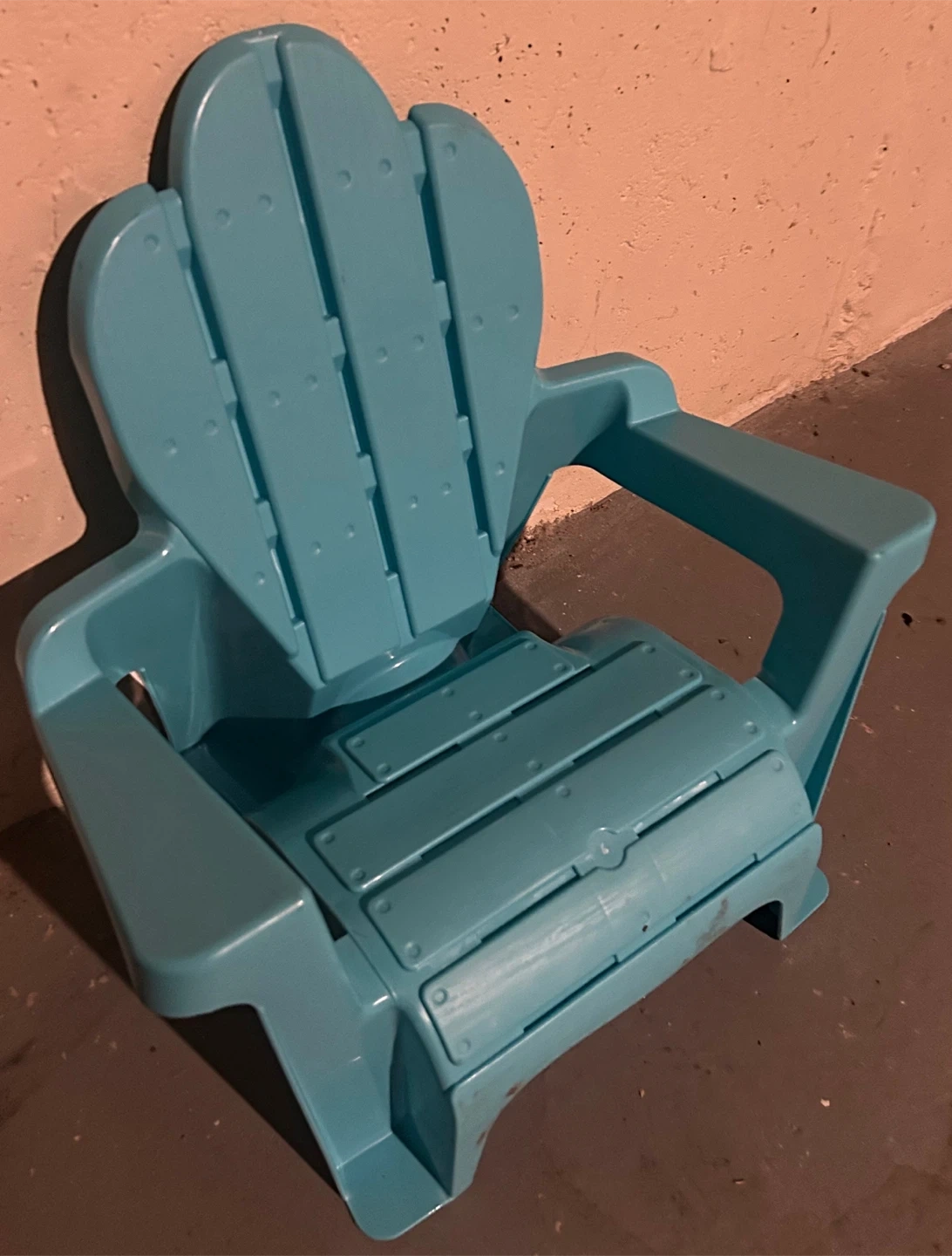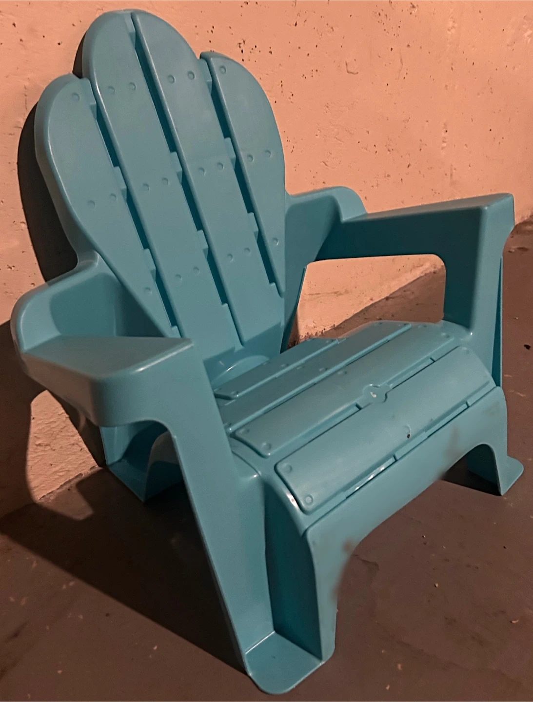 • PICK UP ONLY • A cute little Adirondack chair for kids! It's made of durable blue plastic, perfect for indoor or outdoor use. A great addition to any playroom or backyard! Easy to clean & easy to bring along anywhere you go! Asking $15 OBO. Open to offers! :)