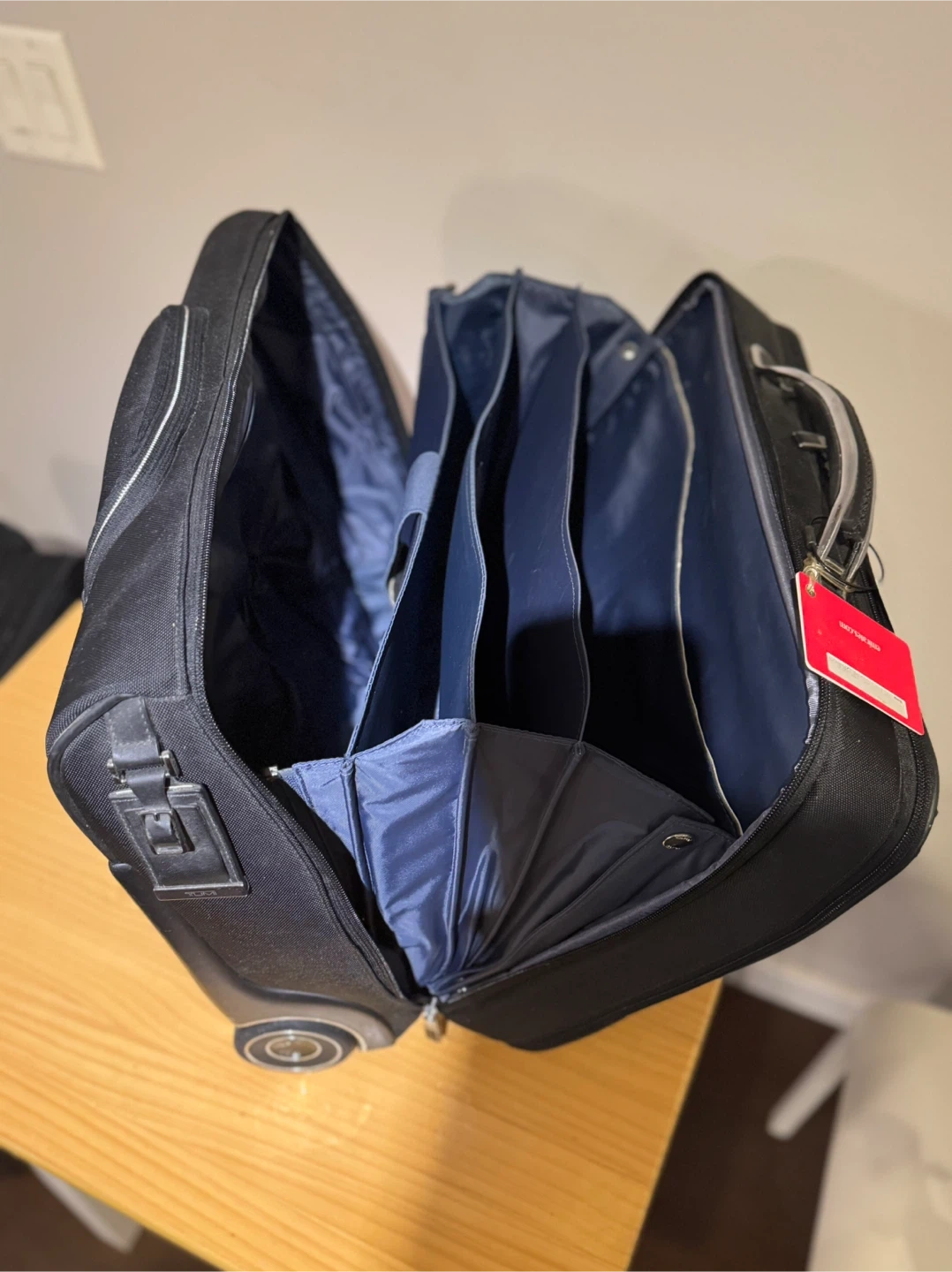 Selling a TUMI wheeled briefcase in black. It's in great shape and ready for a new owner. Perfect for business trips or everyday business use