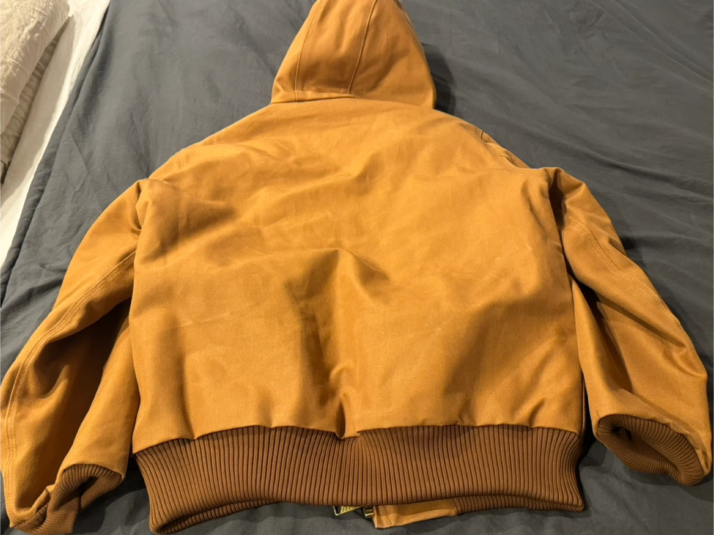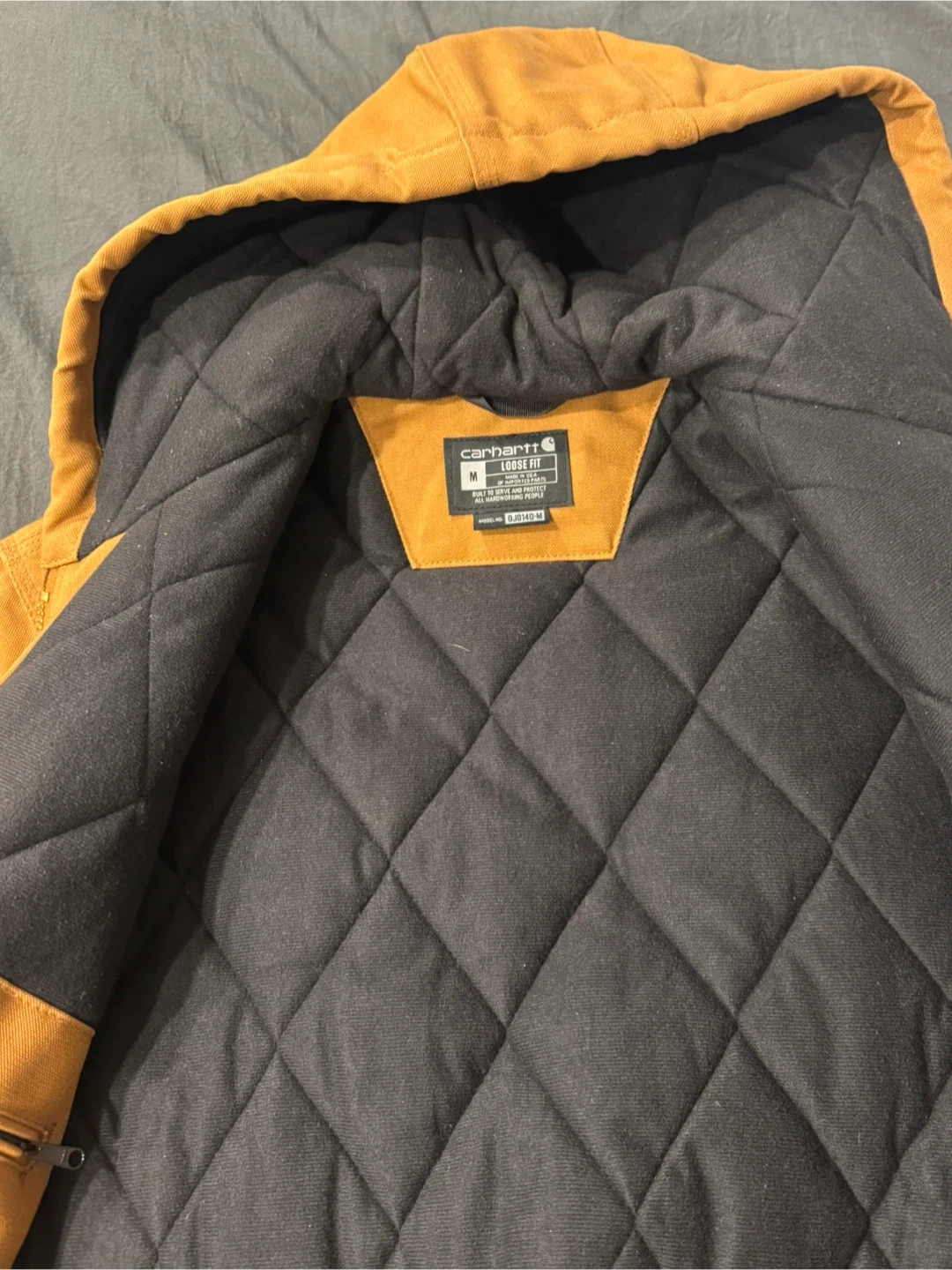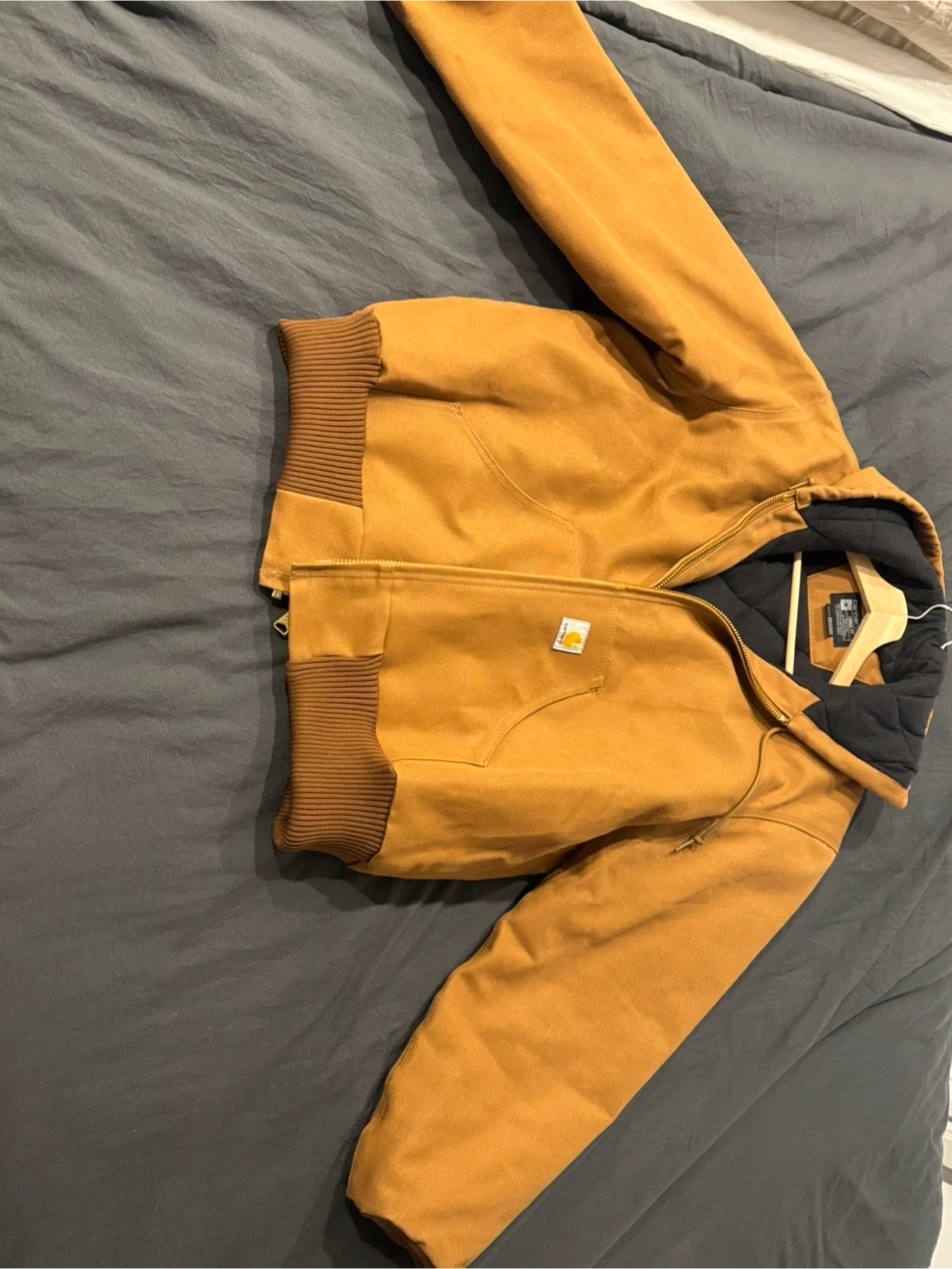 Selling a Carhartt loose fit jacket in size medium. It's in great condition and ready for a new home! The jacket is a nice brown/tan colour and has a black quilted lining.