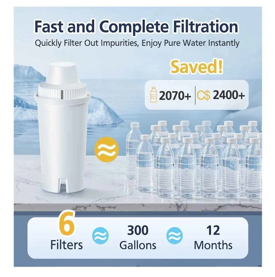 Standard Water Filter Replacement Compatible with Brita Water Pitchers and Dispensers, Classic OB03, Everyday, UltraMax, Metro+, XL, Mavea [hidden information] and More, NSF Certified Pitcher Filters-6 Pack