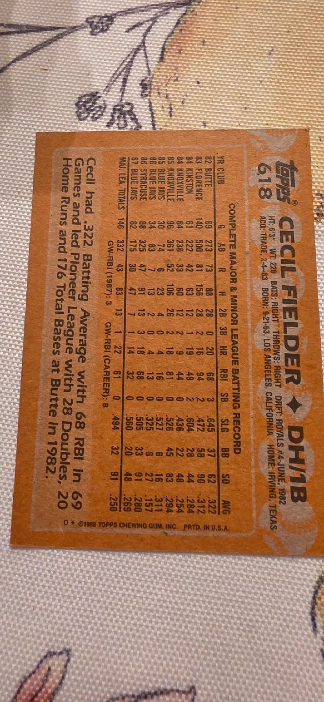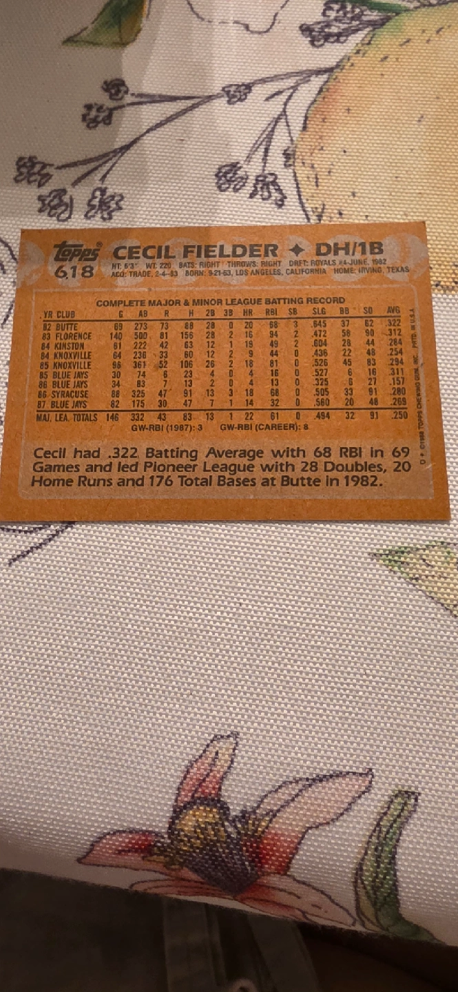 256Selling a 1988 Topps baseball card featuring Cecil Fielder of the Toronto Blue Jays! Great for any collector of baseball memorabilia or Blue Jays fans