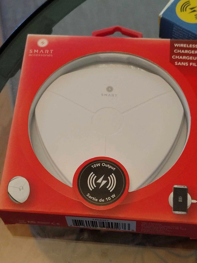 This SMART Accessories wireless charger is designed to efficiently charge your iPhone or Android device with a 10W output. Key features include: * Wireless charging capability * Compatible with both iPhone and Android devices * 10W output for fast charging This charger is brand new, still in its original packaging. It’s a convenient way to power up your devices without the hassle of cables. It can be yours for only $20 Each If the ad is up, the item is available!