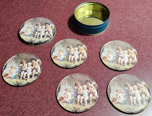 Vintage Decorative Cherub Coasters (Set of 5) in Tin♥️