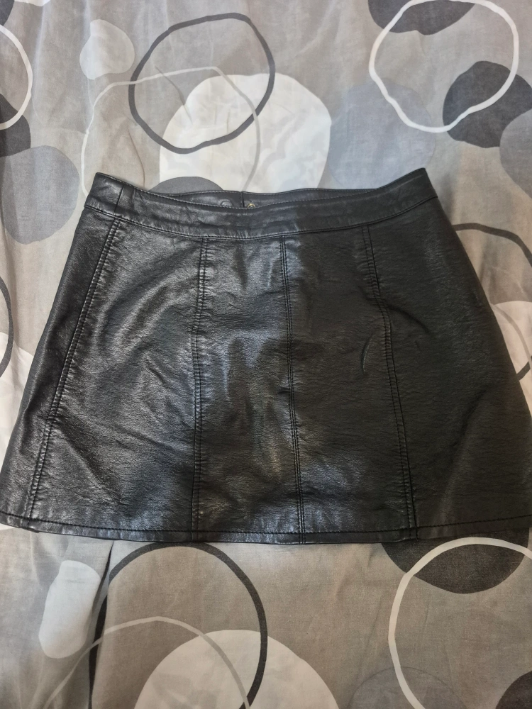 Selling a cute H&M Divided faux leather skirt in size 6! It's a stylish piece that's in great condition. The skirt features a classic design with a button-up front. Perfect for adding a bit of edge to your wardrobe!