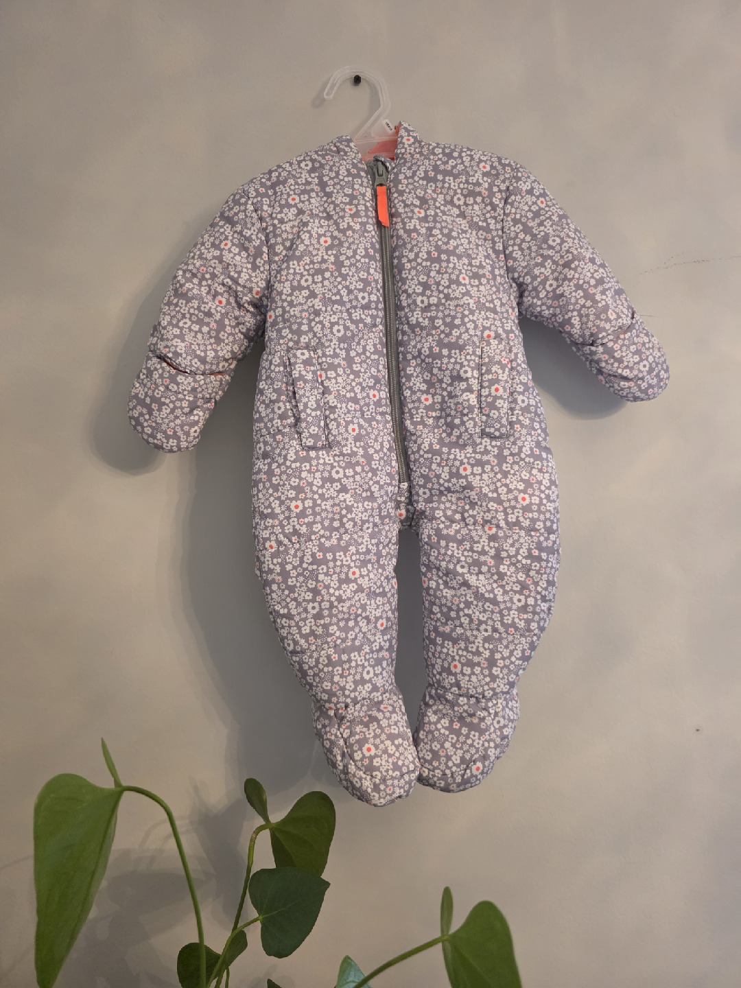 A cute and cozy floral baby snowsuit! Perfect for keeping your little one warm during the colder months. It's in great condition and ready for a new home
