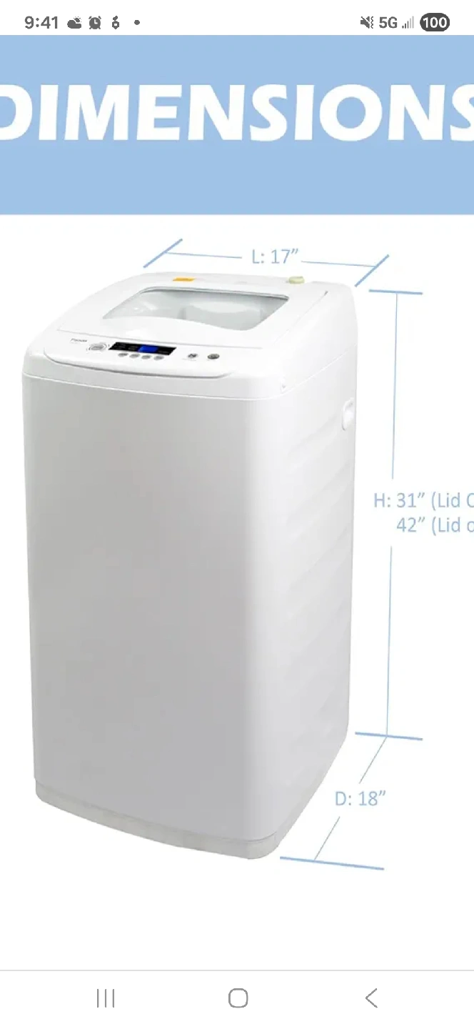 Selling a Panda portable washing machine in great condition! open to offers It's a compact top load washer with a stainless steel drum and a built-in drain pump. Perfect for small apartments, dorms, or RVs. Dimensions: - Height: 31" (Lid Closed) / 42" (Lid Open) - Length: 17" - Depth: 18"
