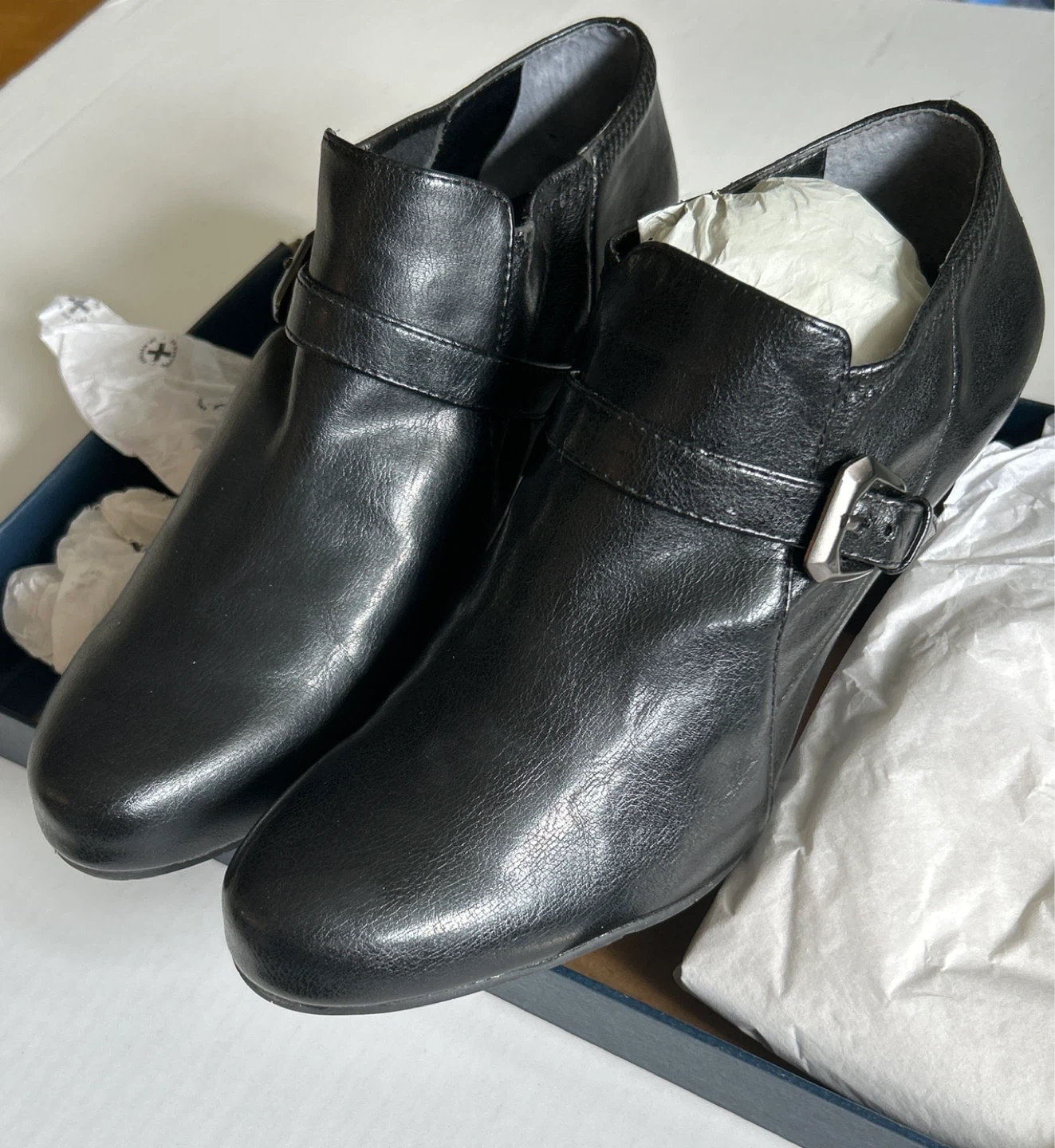 Classic black leather ankle boots from Naturalizer. With a -3 inch- heel. These boots are in good condition and come with the original box. Perfect for adding a touch of style to any outfit!