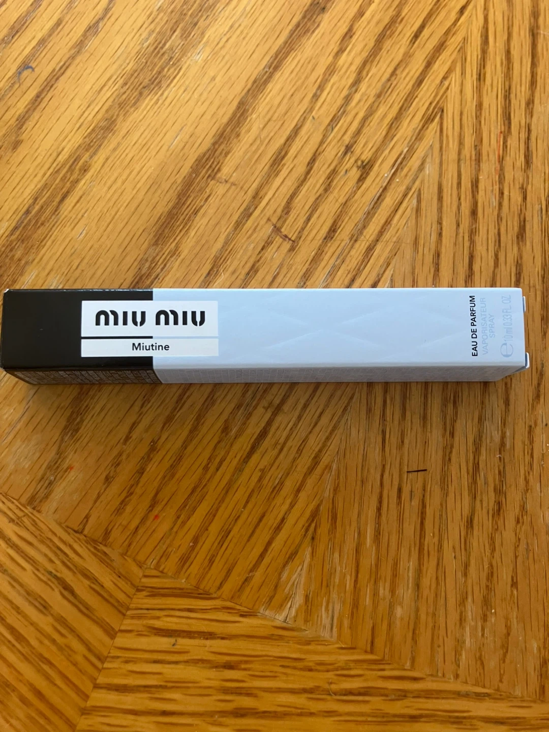 Miu Miu Miutine Eau de Parfum Travel Spray! It features a lovely strawberry and vanilla scent. Retails for $48 +tax.