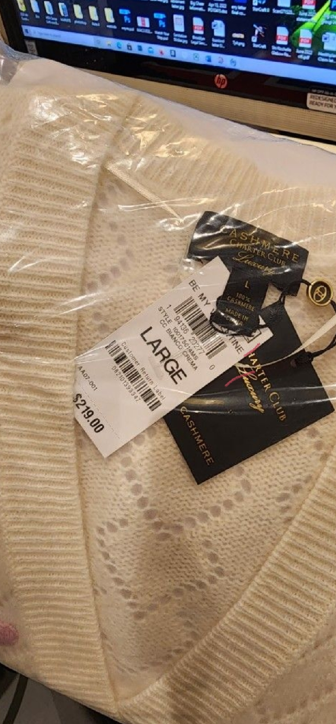 This is a brand new with tags Cashmere Charter Club cardigan! It's a size large and made of 100% cashmere. The cardigan features a lovely heart pattern. Originally bought for $219