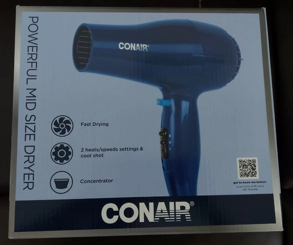86Conair 318RC Precise Styling 1875 Watt Mid Size Dryer, 2 heat / 2 speed, All Hair Types, Cool Shot Button, Includes Concentrator, Blue