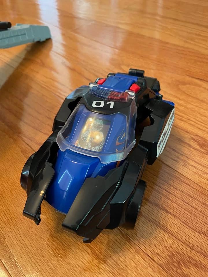Best for ages: 4 to 8 years SCREEN Animates, talks and roars. VERY cool toy. Fly, zoom and roar with the Switch & Go® 3-in-1 Rescue Rex! Easily combine the fire truck, rescue copter and electronic police car into a roaring T-Rex over twenty inches long. • Transform playtime adventures with Switch & Go®; easily combine the fire truck, rescue helicopter and electronic police car into a 20+ inch long T-Rex with animated dino eyes • Race around with an action-packed police car with lights, phrases and an animated driver • Rotate and extend the ladder on the fire truck and spin the propeller on the helicopter to amp up imagination • Cool action sounds, phrases and digital effects encourage play and adventure with transforming action figures Like new. Works perfectly.