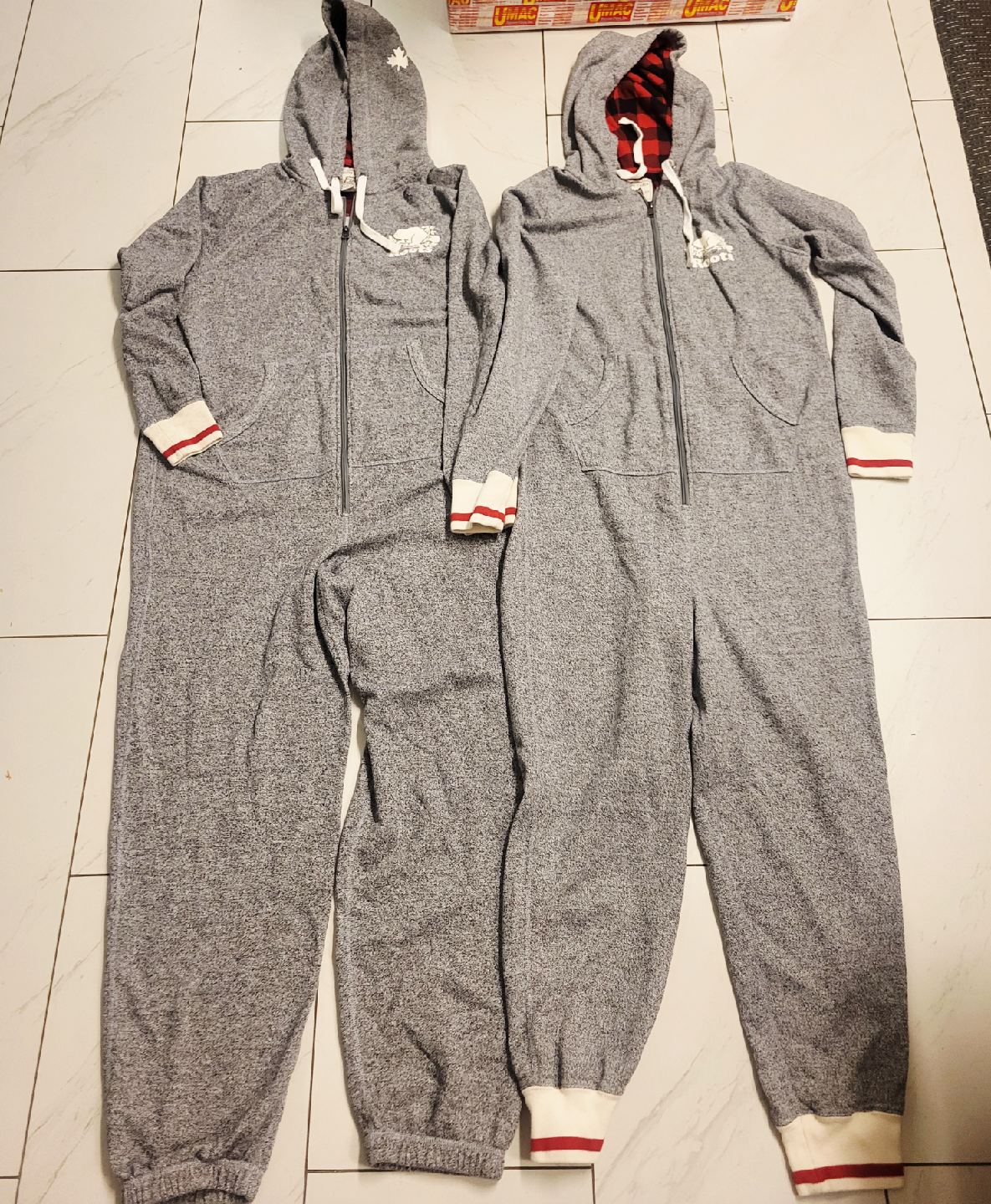 Selling a Roots onesie in adult size. It's grey with a hood and a zipper. Perfect for lounging around the house on a chilly day!