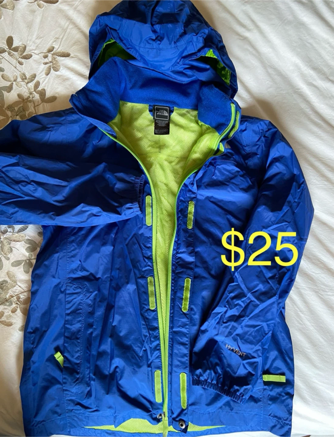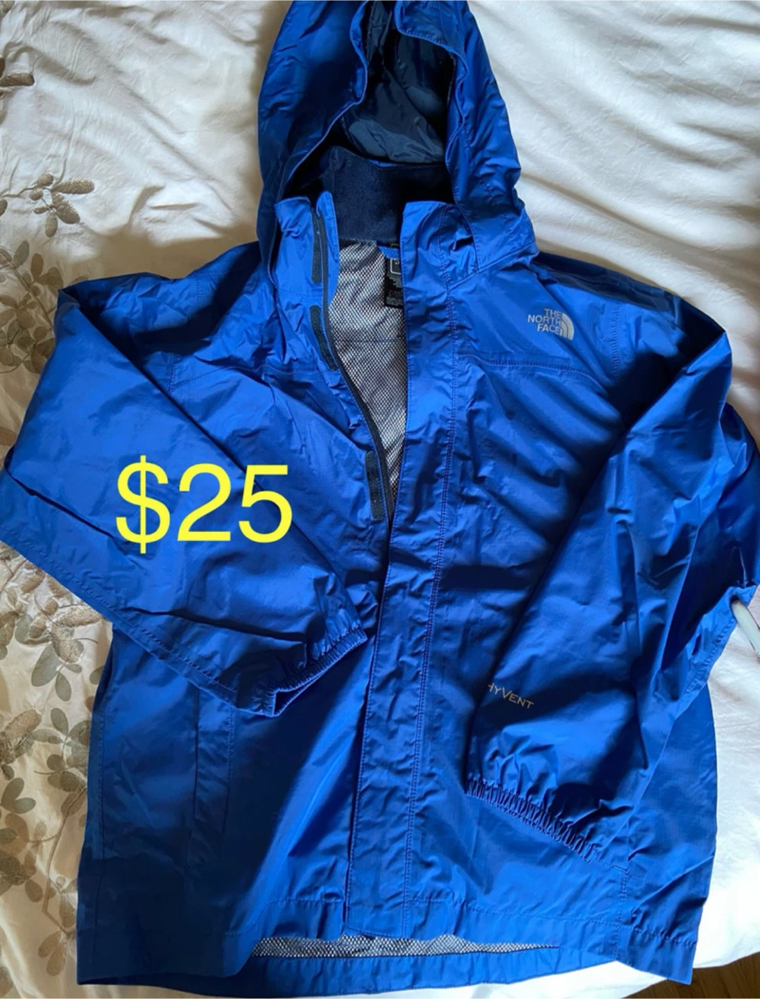 North Face rain jacket - beautiful blue colour, hideaway hoodie, size M (10-12) - $25