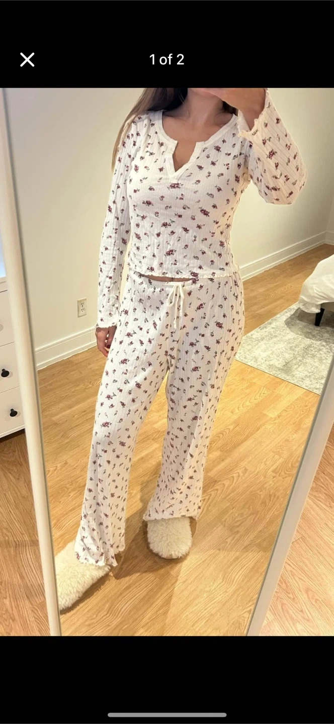Cozy Old Navy pajama set in a size small tall! It features a cute floral pattern on a soft, ribbed material. Perfect for a comfy night's sleep or lounging around the house