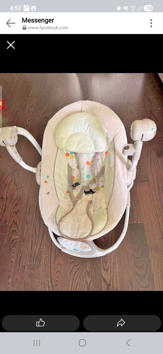 Selling a gently used Ingenuity baby swing! It's in great shape and ready for a new little one. The swing has a cozy seat . It's perfect for soothing and relaxing your baby