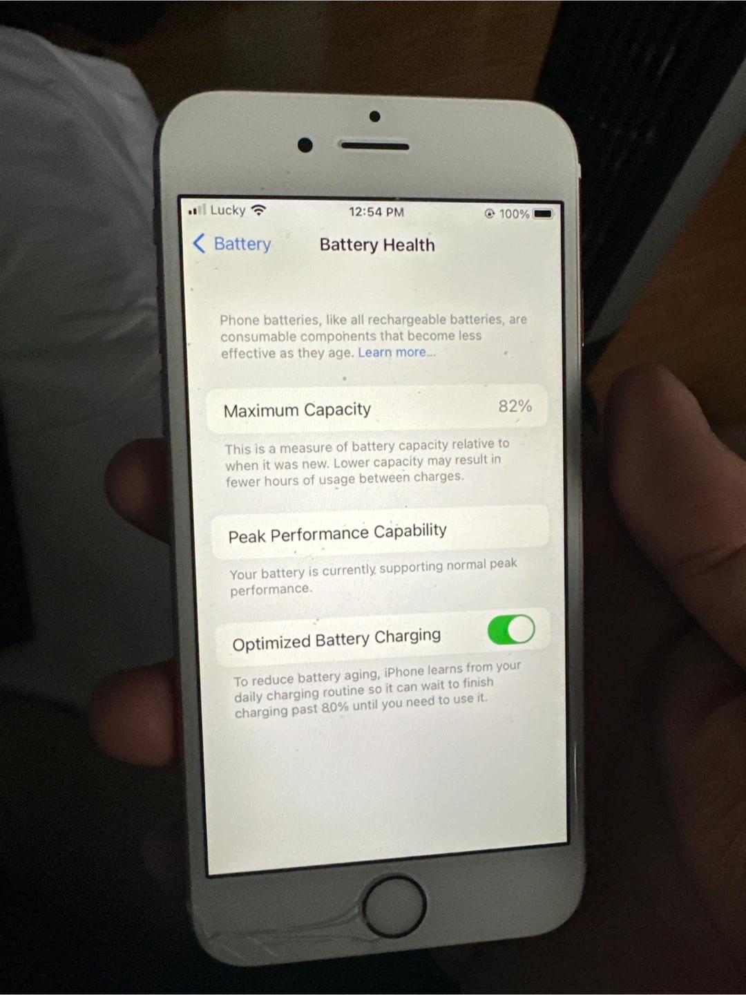Selling my iPhone 6S in rose gold. It's in good condition, with some wear and tear (crack on the screen at the bottom but can’t feel it and can be used without a screen protector ). Battery health is at 82%.