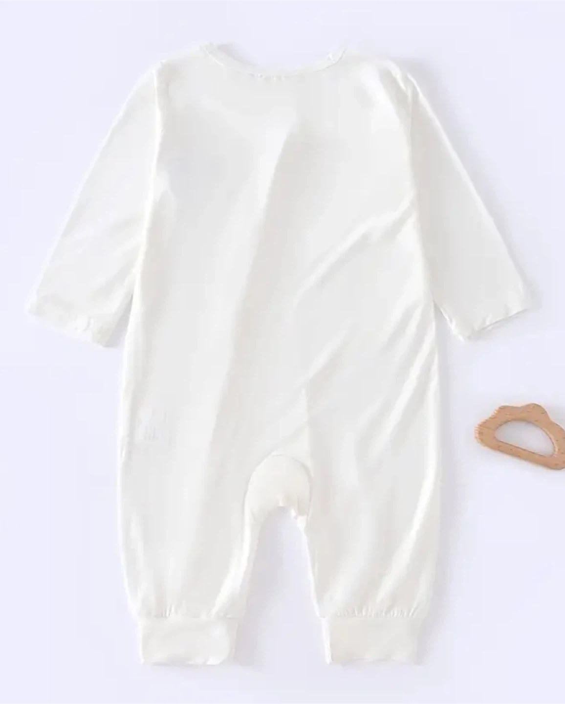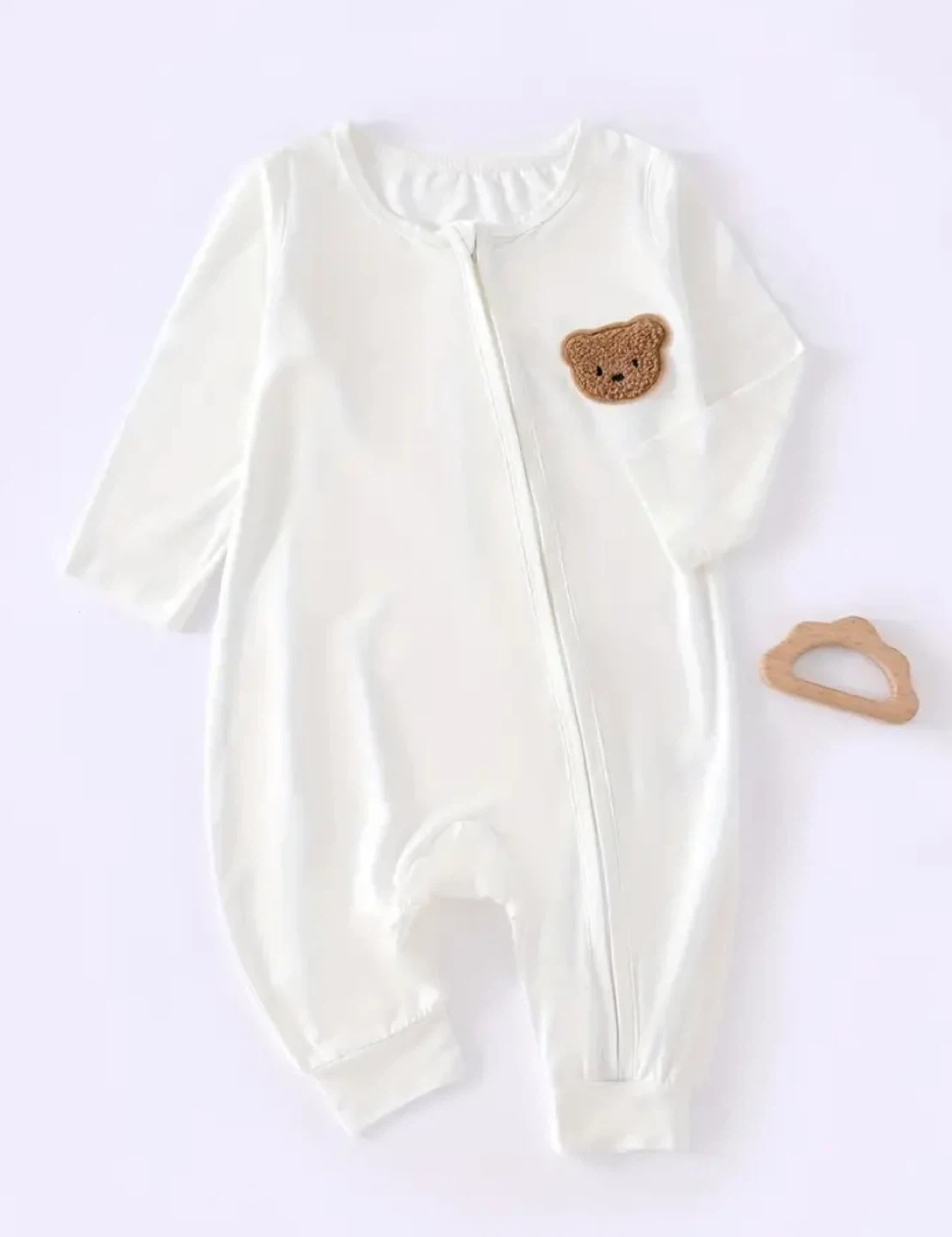 Bamboo Fiber Onesies - Soft Breathable All-Season Long Sleeve Zipper Rompers, White Outfit with Snap Closure, Unisex Bodysuits for &, Bamboo Clothes, Easy Diaper Change, Playful Design, Durable Snap Buttons, Soft Texture.