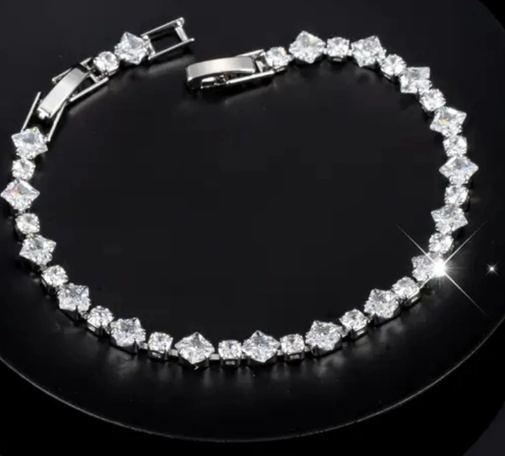 Selling a lovely silver-tone bracelet adorned with sparkling rhinestones. It's in great condition and would make a beautiful addition to any outfit!