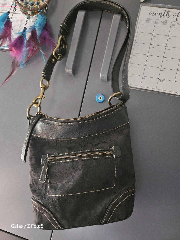 Selling a stylish Coach crossbody bag in black! It's in great condition and ready for a new home. The bag features the classic Coach design and is perfect for everyday use. The model number is E06S-10402. Feel free to reach out if you have any questions
