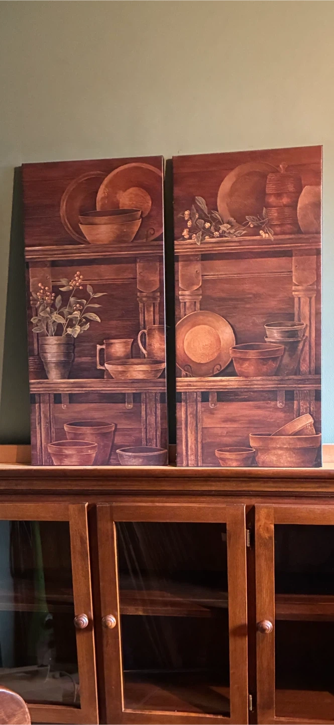 101Two-panel wall art featuring a still life kitchen scene with shelves, bowls, and plants. The artwork has a warm, inviting feel, perfect for adding a touch of rustic charm to your kitchen or dining area