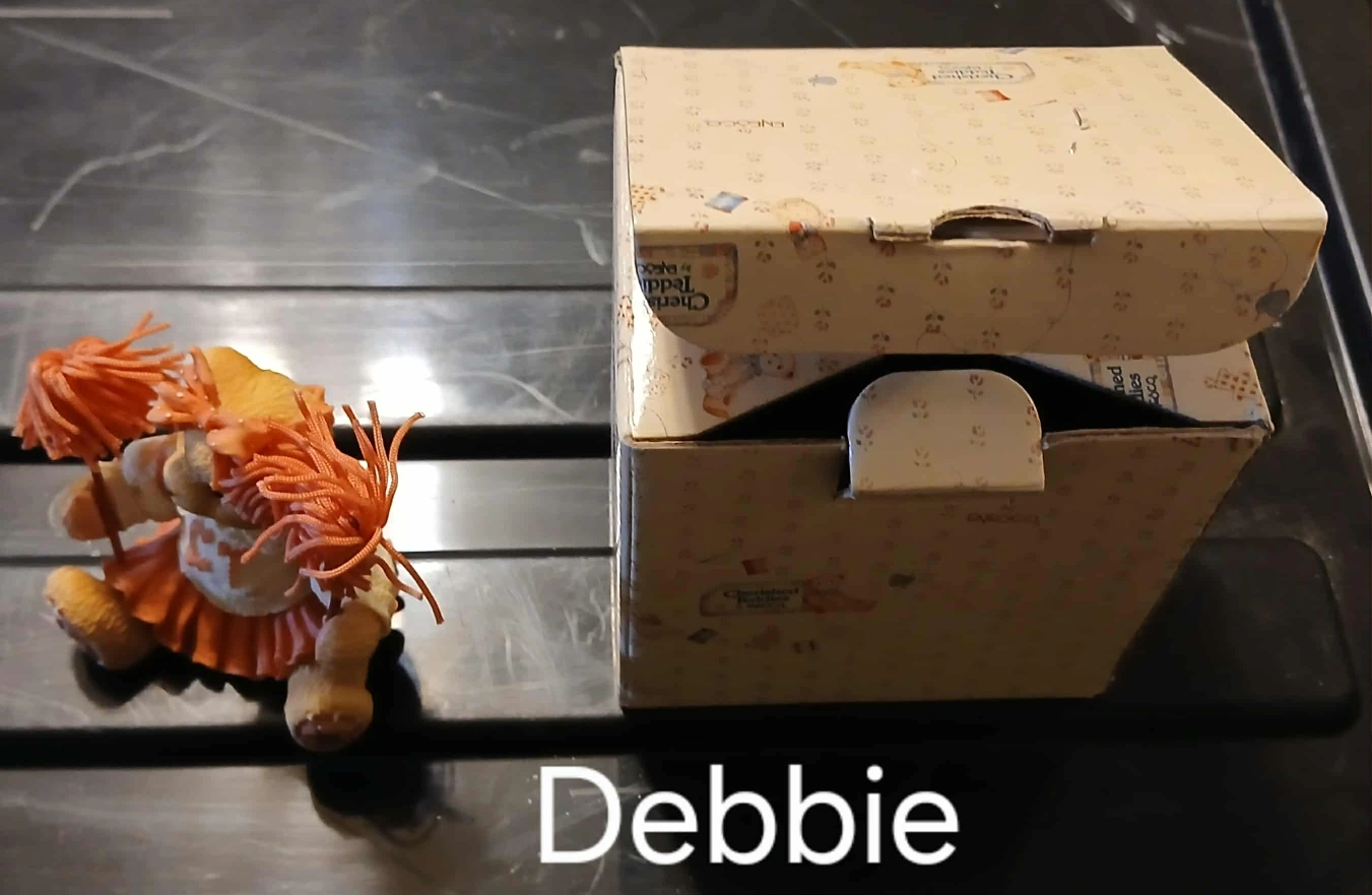 Selling a Cherished Teddies figurine named "Debbie"! It comes with its original box. This cute little figurine would make a lovely addition to any collection