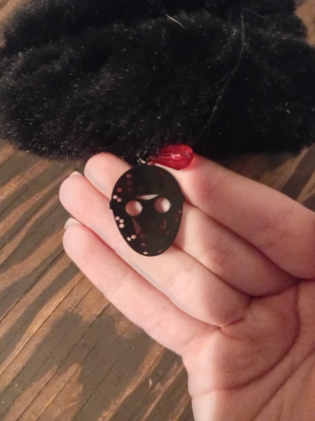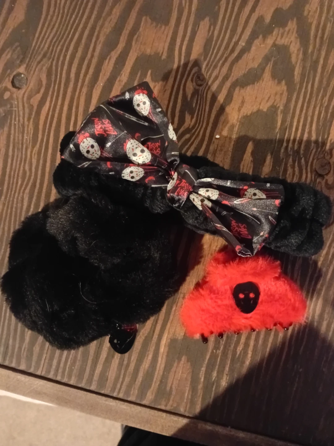 This set includes a fuzzy black scrunchie with a Jason mask charm and a red fuzzy claw clip with Jason's hockey mask. It all comes in a clear pouch featuring Friday the 13th graphics. These accessories are a fun way to show off your horror fandom!