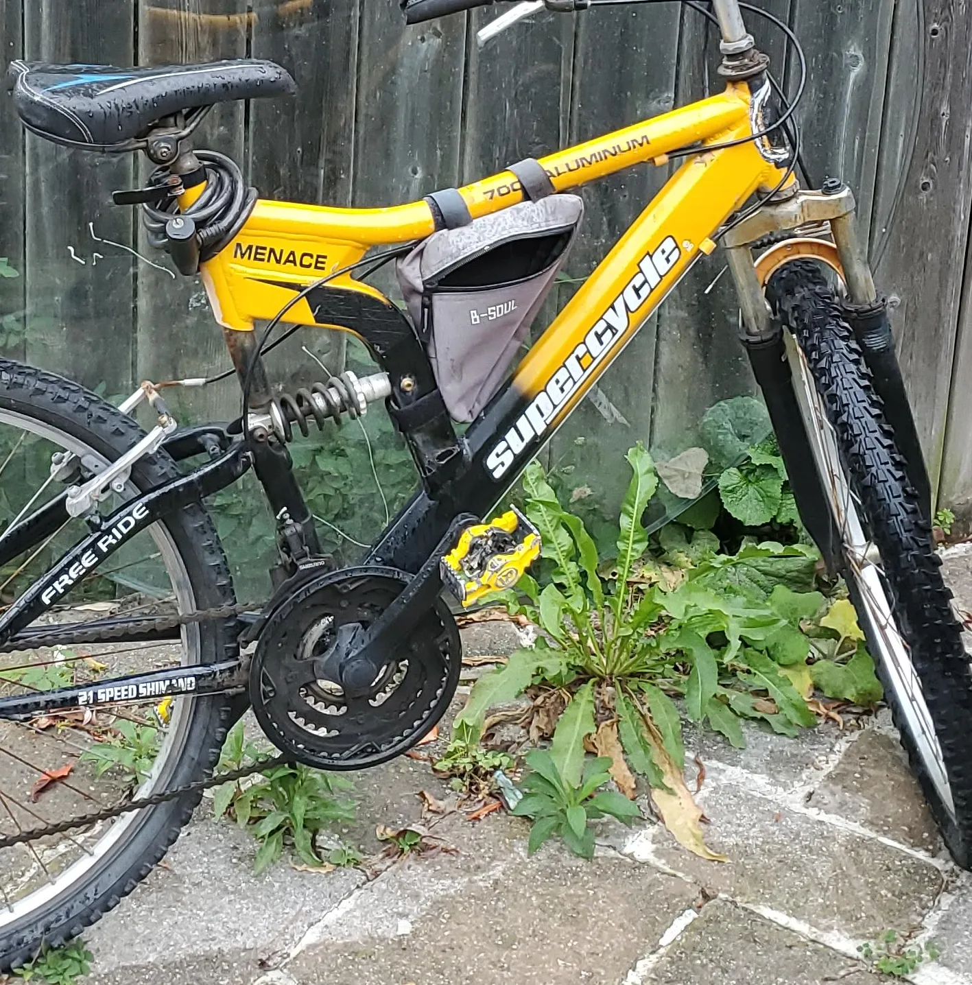 Selling a Supercycle Menace mountain bike! It's yellow and black. Features include 700 Aluminum and 21 Speed Shimano gears. Great for trails or getting around town