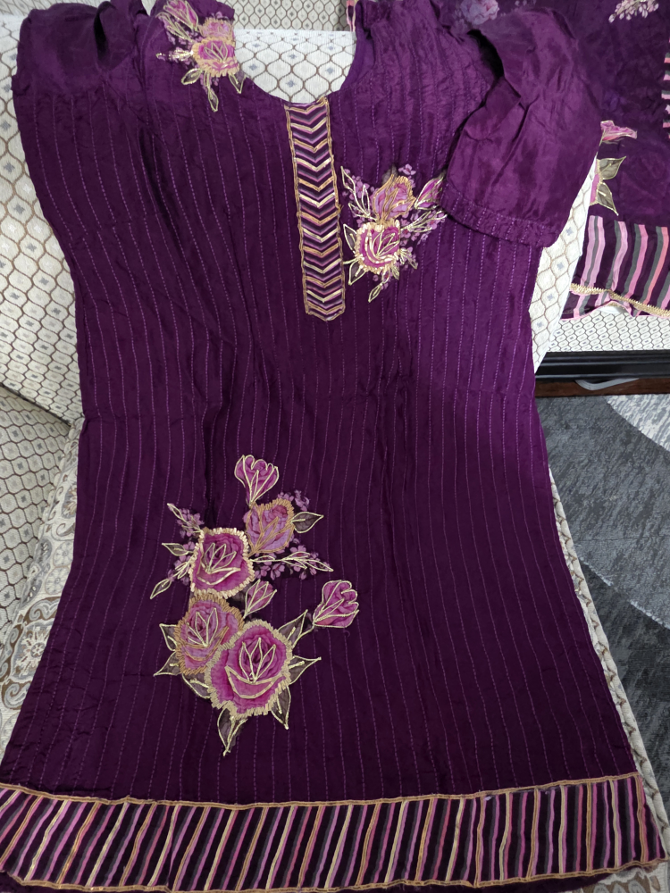 Beautiful purple salwar kameez . This outfit includes the kameez (top), salwar (pants), and dupatta (scarf). Perfect for a special occasion or festive event!