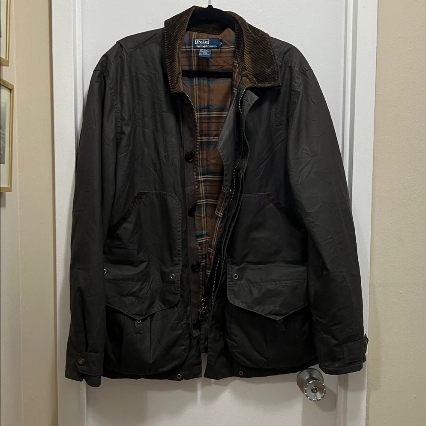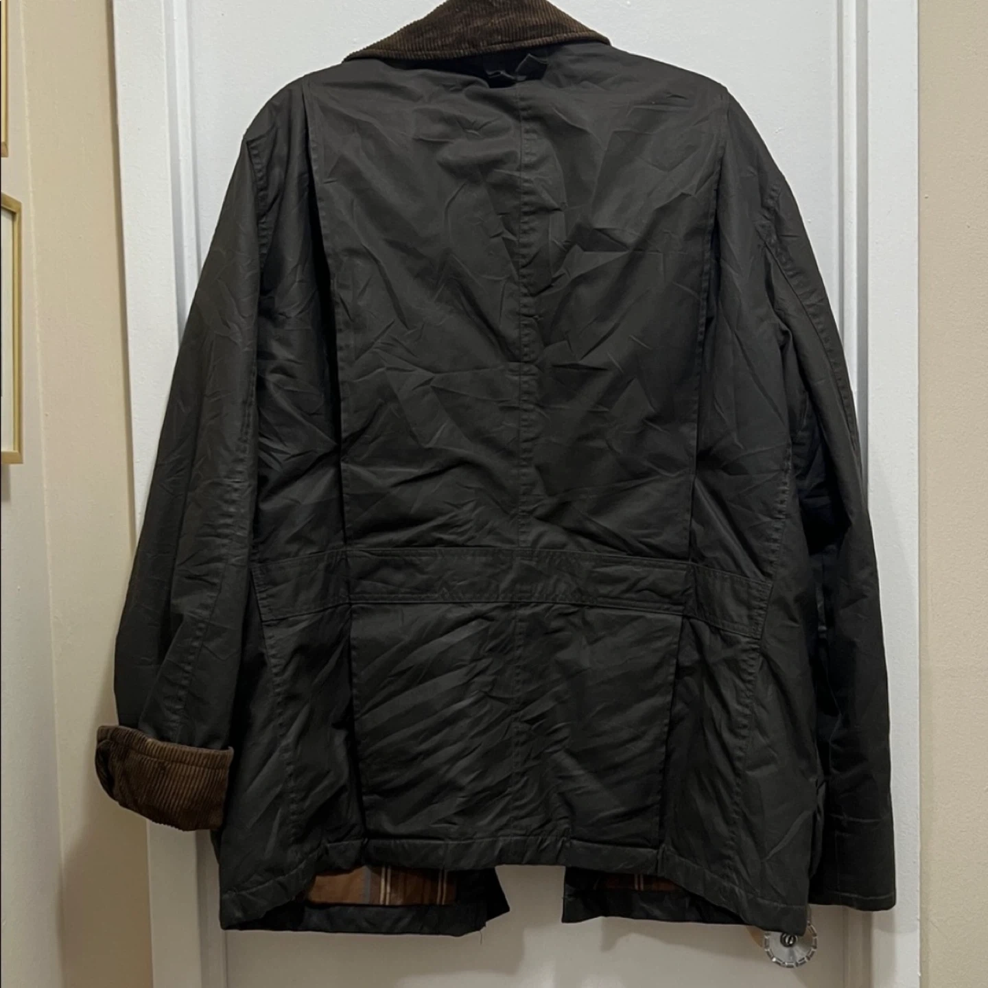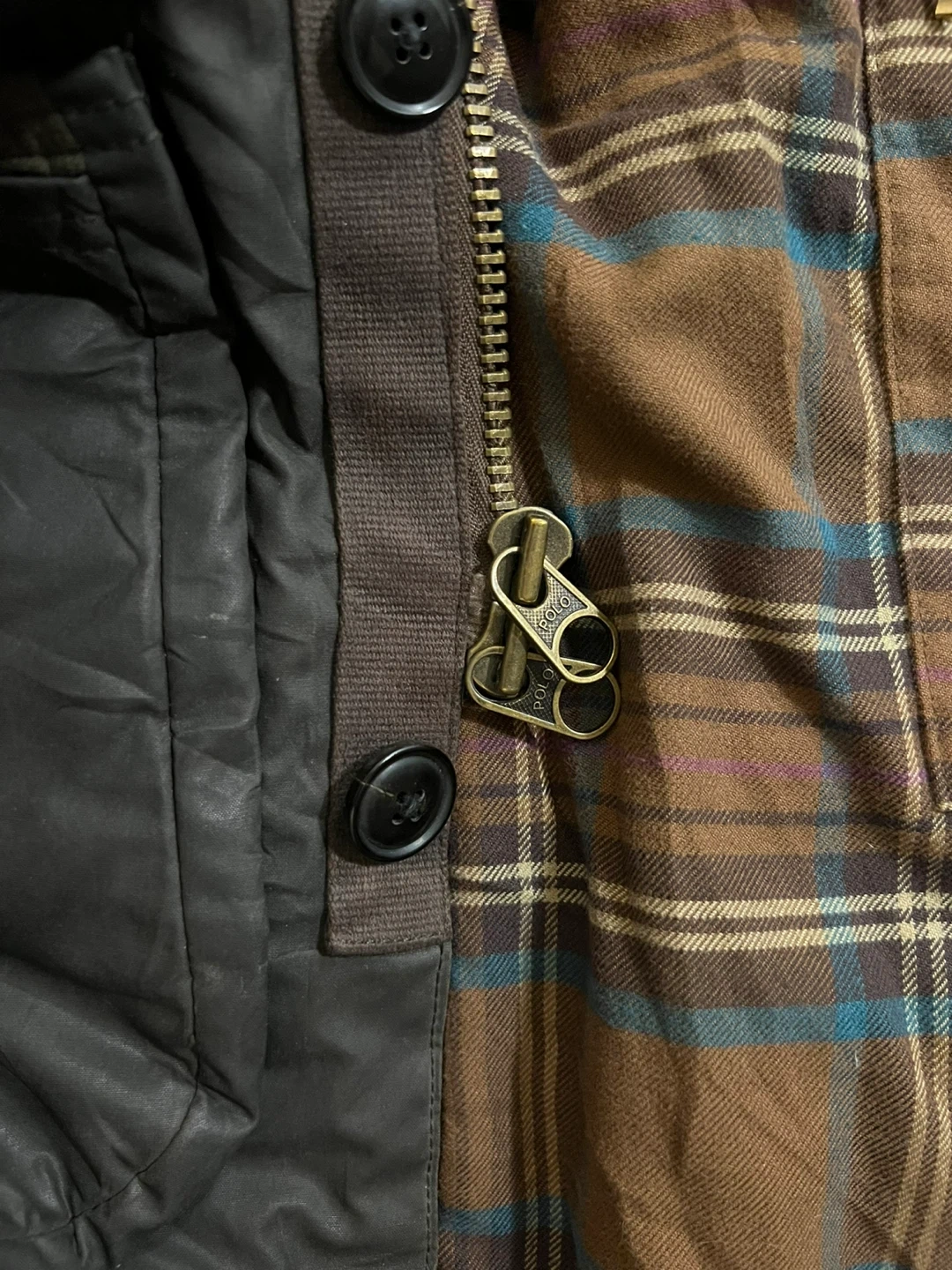 Men's large, I wore it as a medium woman for an oversized look. Very similar style and material to Barbour. Great condition, two small marks on the inside plaid and on the back of the sleeve (pictured). You can roll the sleeve to have the corduroy exposed. Has tons of pockets Retails for over $600, price is firm