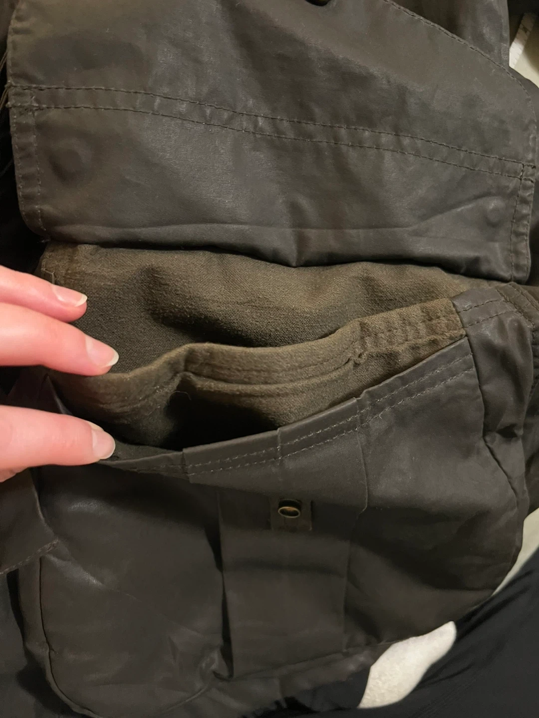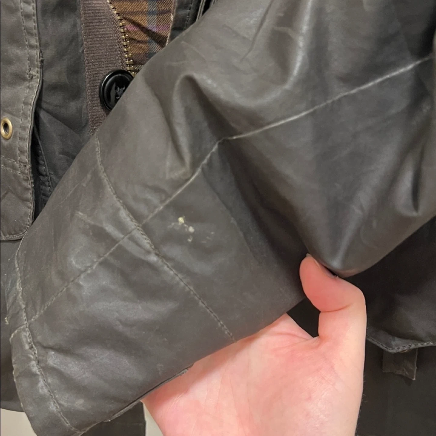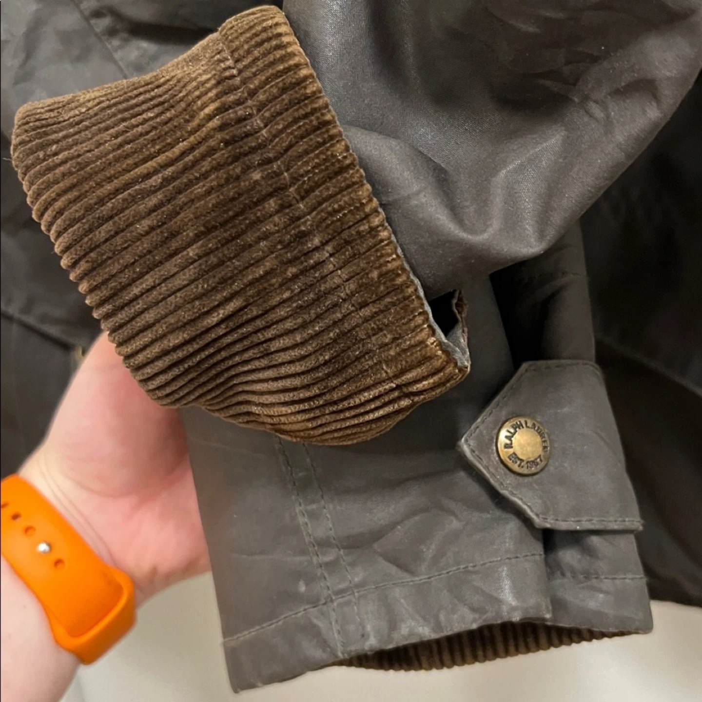 Men's large, I wore it as a medium woman for an oversized look. Very similar style and material to Barbour. Great condition, two small marks on the inside plaid and on the back of the sleeve (pictured). You can roll the sleeve to have the corduroy exposed. Has tons of pockets Retails for over $600, price is firm