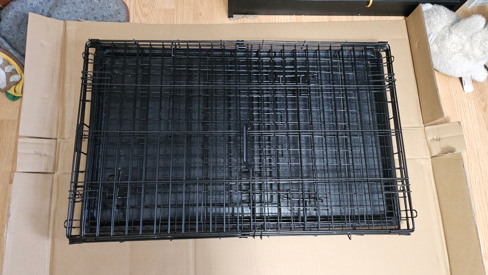 Selling a black wire dog crate. It's in excellent condition. Was gently used for 4 mos. 91L×58W×66H. Fully equipped, with tray, handle, and divider. Front and side doors.