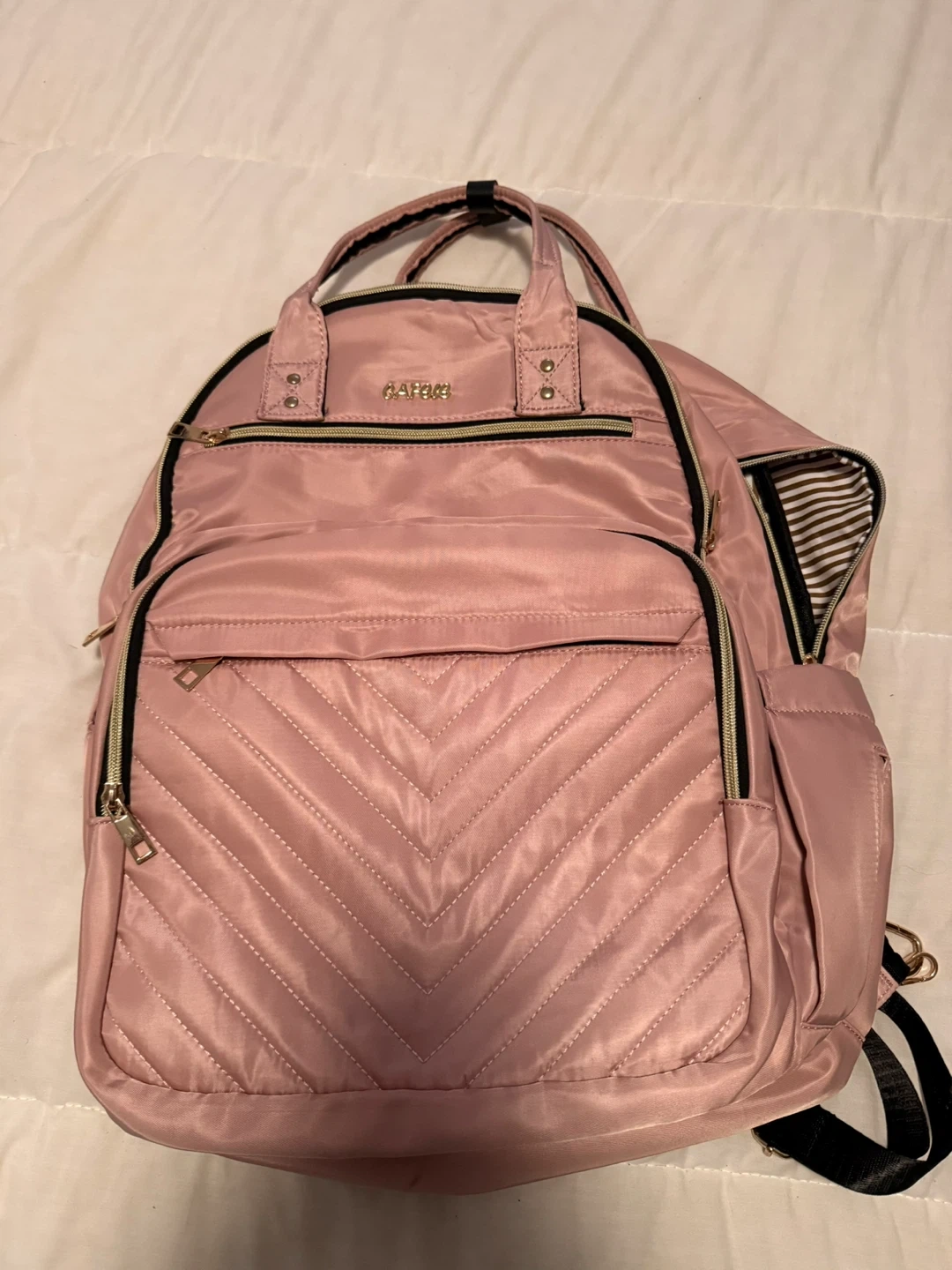 Selling a gently used Cafele laptop backpack in a lovely pink colour! It's perfect for carrying your laptop and other essentials. Amazon does state that this backpack is waterproof! It features a stylish quilted design and multiple compartments to keep everything organized. Great for school, work, or travel!