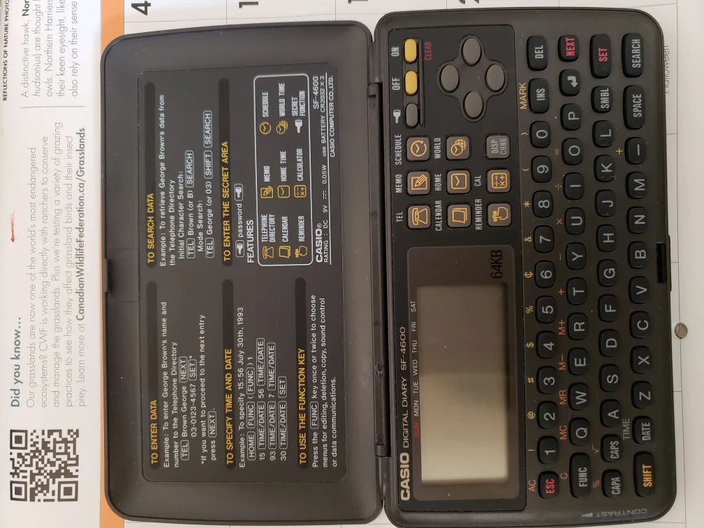 Selling a Casio 64KB Digital Diary, model SF-4600. It's in great shape and ready for a new owner. Perfect for keeping your schedule and important information like phone contacts organized on the go