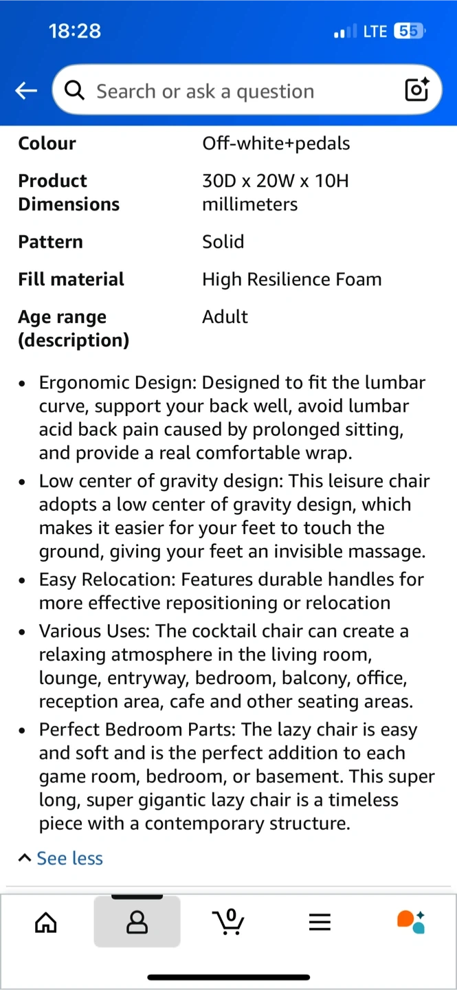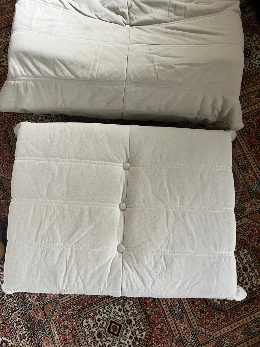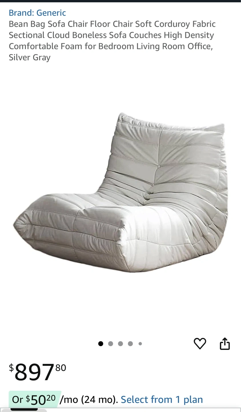 ‼️👇Selling a comfy bean bag Single Seater Sofa with Ottoman, Stylish Chair, Low Sofa, Floor Sofa, Modern Bean Bag Cushion Sofa Bead Cushion Lazy Sofa Living Alone, High Resilience Urethane(Color:Off-White+Pedals)