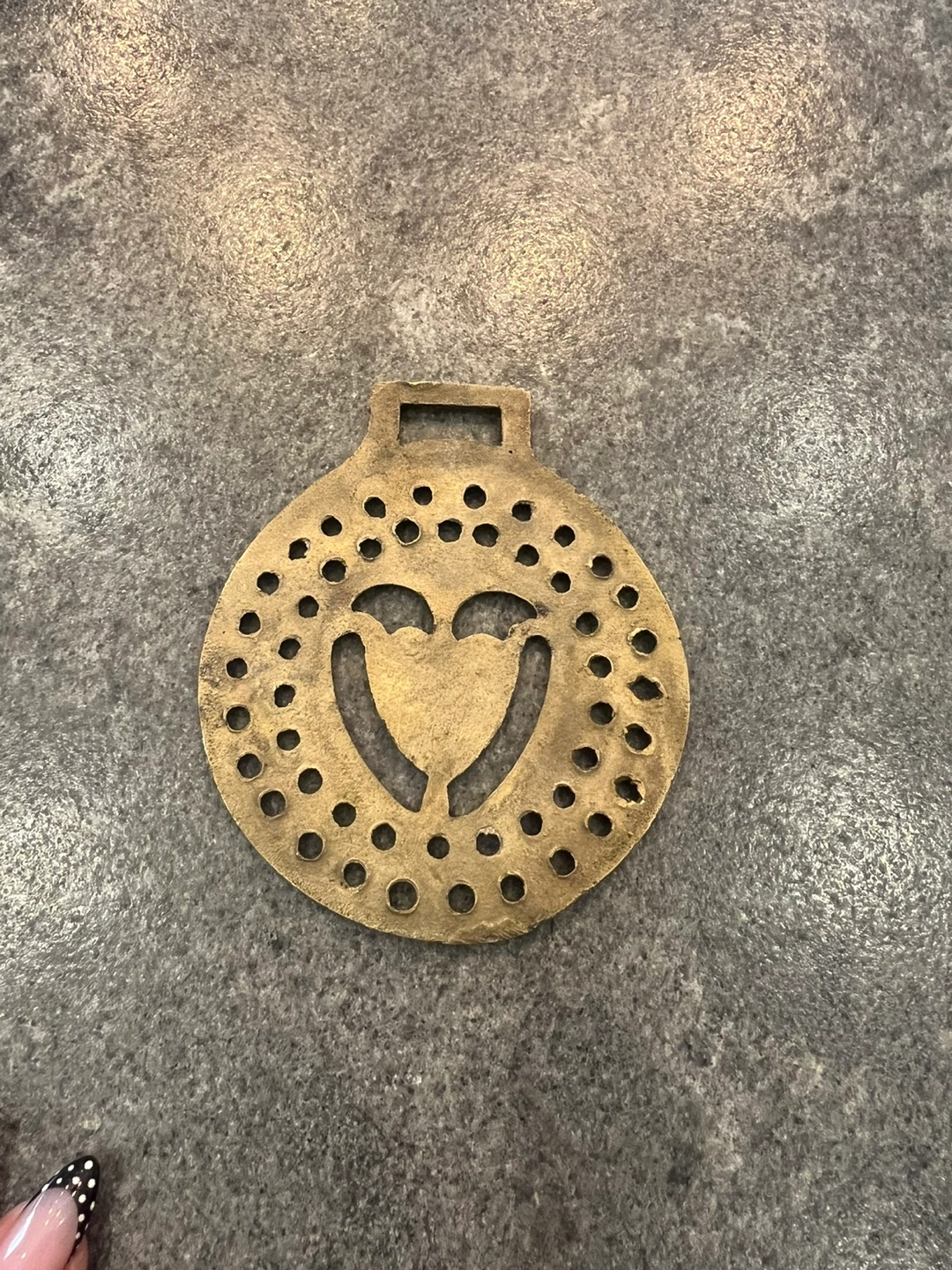 26Antique cast horse brass. Tulip centre in a decorative pierced border. Made in England 19th Century Romany Gipsy Origin